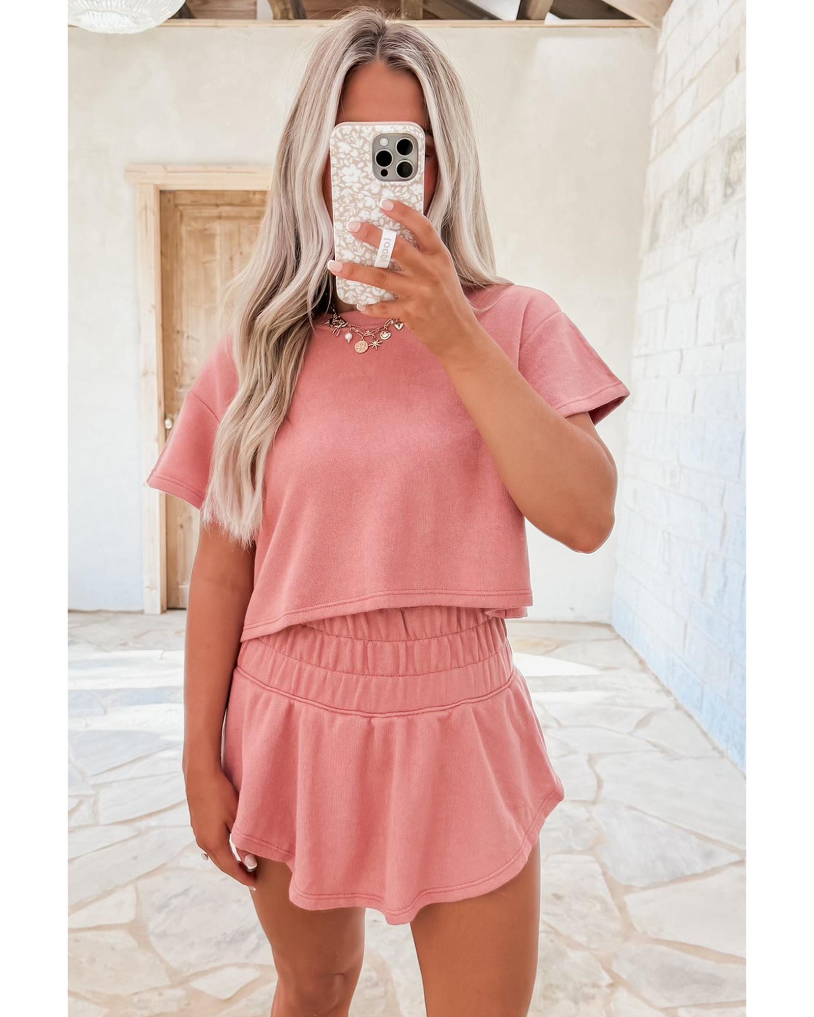 This 2-piece set includes a cropped tee and a ruffle high waist skort, offering a trendy and casual look suitable for various occasions. Designed with a fitted style, it combines comfort and fashion effortlessly.