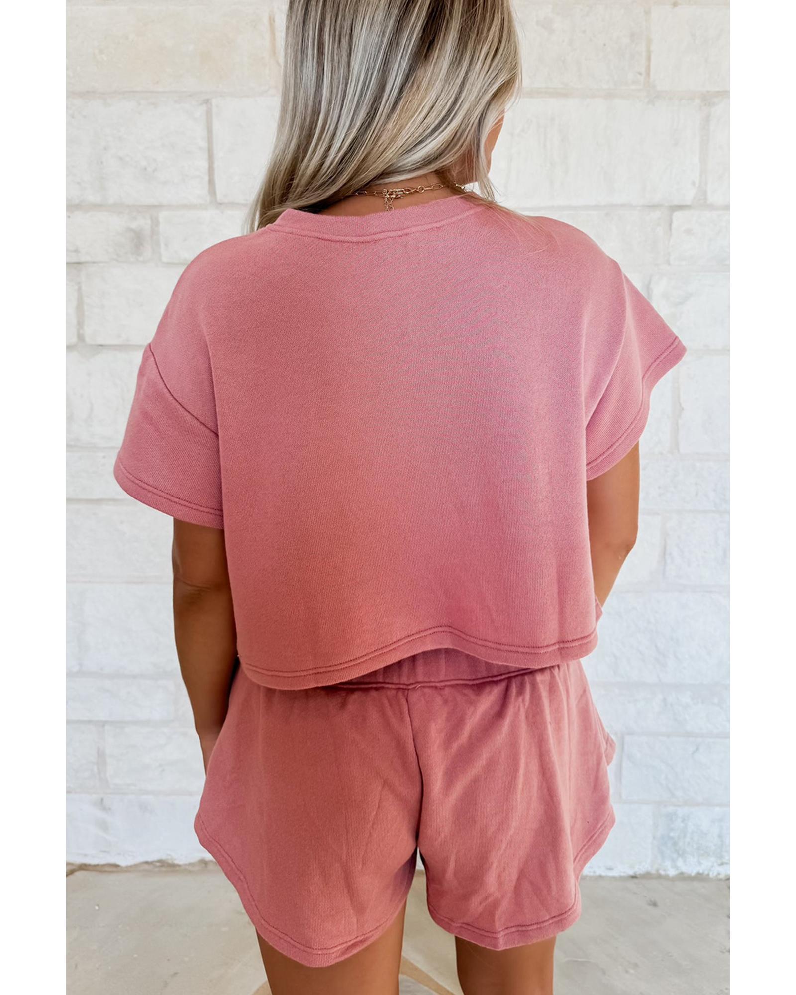 Blossom Bow Crawfish Print T Shirt and High Waist Ruffle Skorts Set – S