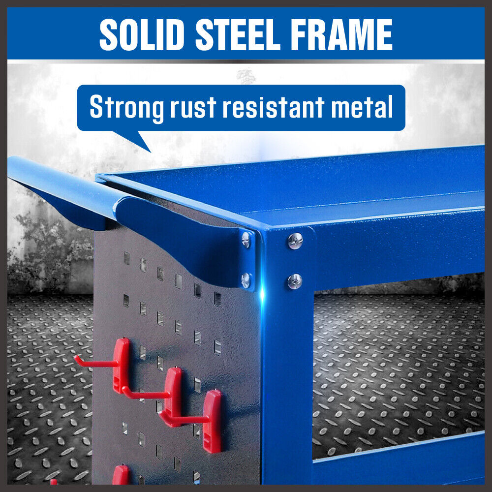 Blue 3-Tier Tool Cart Storage Trolley Toolbox Workshop Garage Organiser 150kg Blue