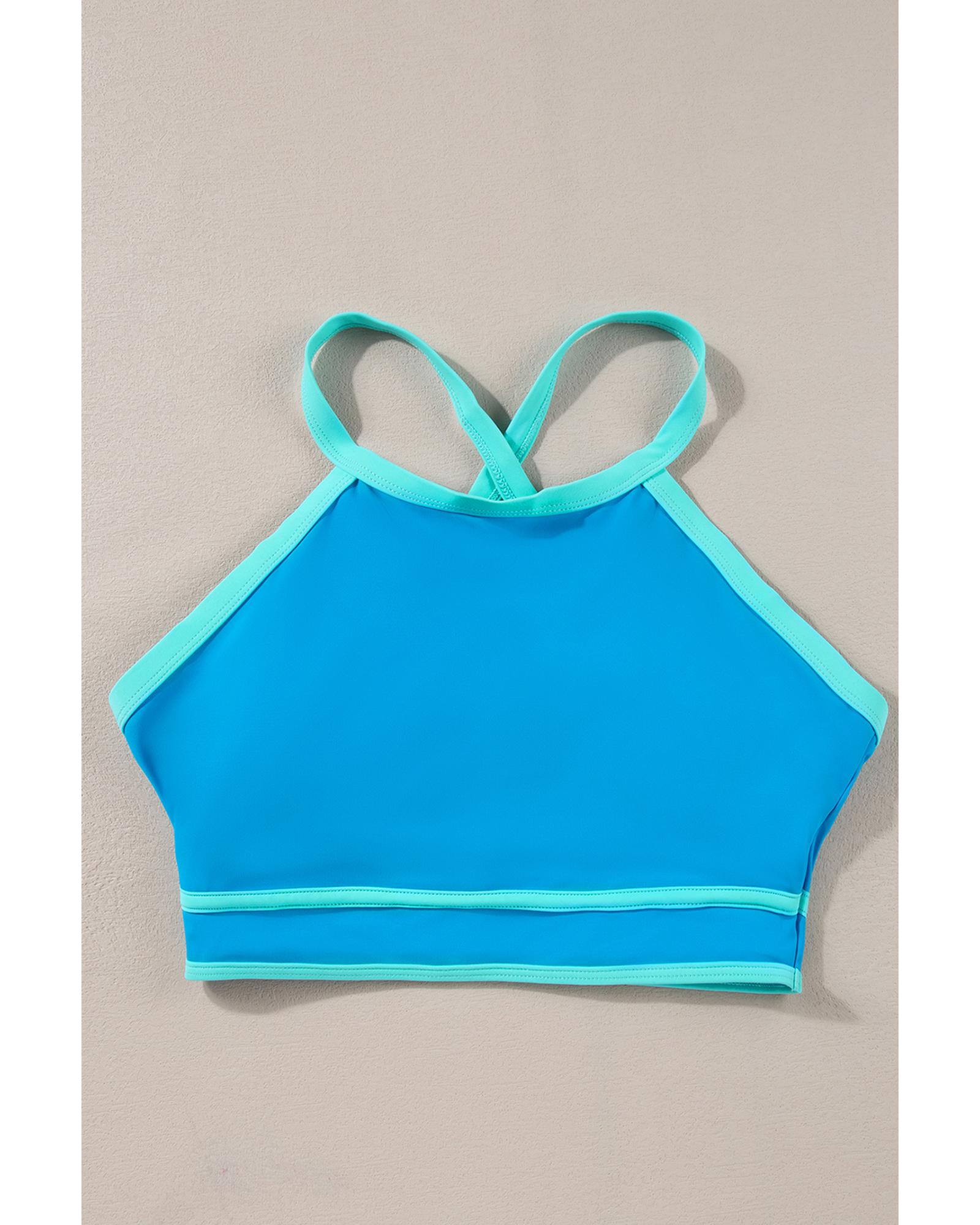Blue Contrast Trim Crisscross Back High Waisted Bikini – S