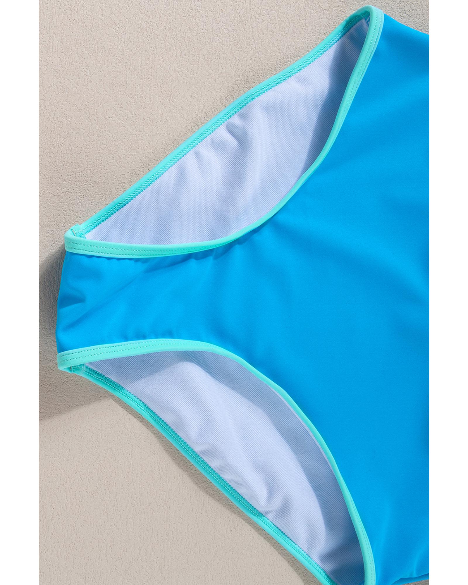 Blue Contrast Trim Crisscross Back High Waisted Bikini – XL