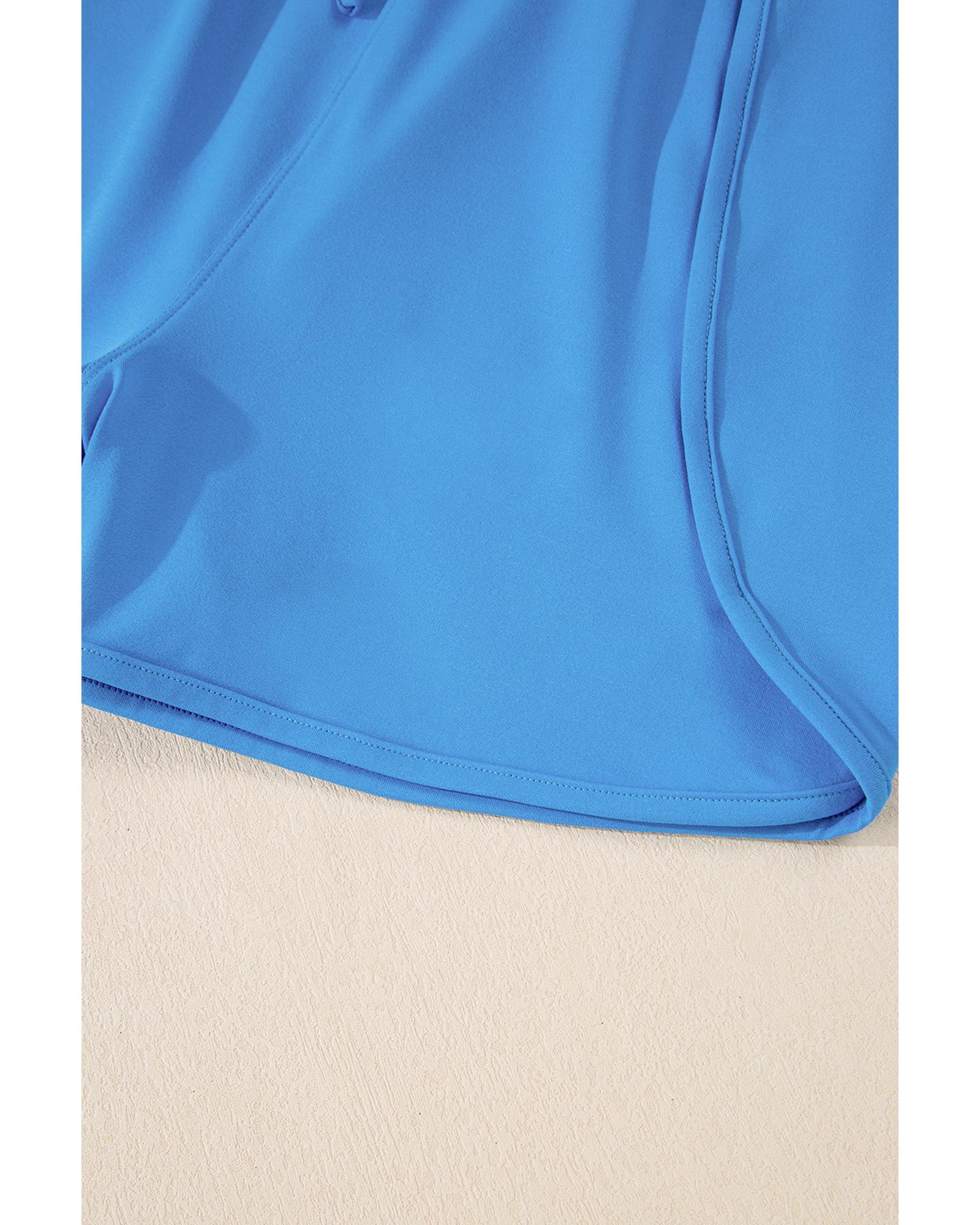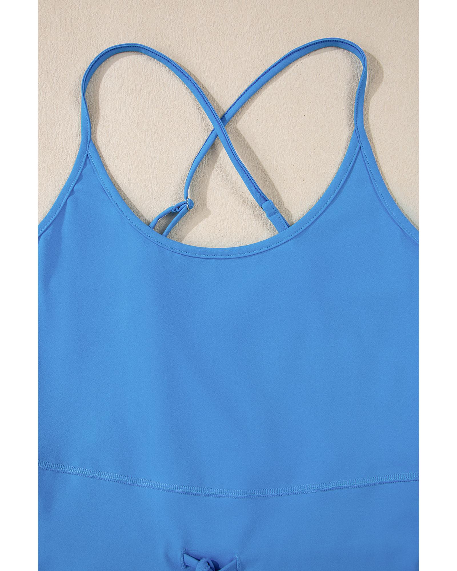 Blue Crossed Spaghetti Straps Drawstring Waist Sporty Romper – XL