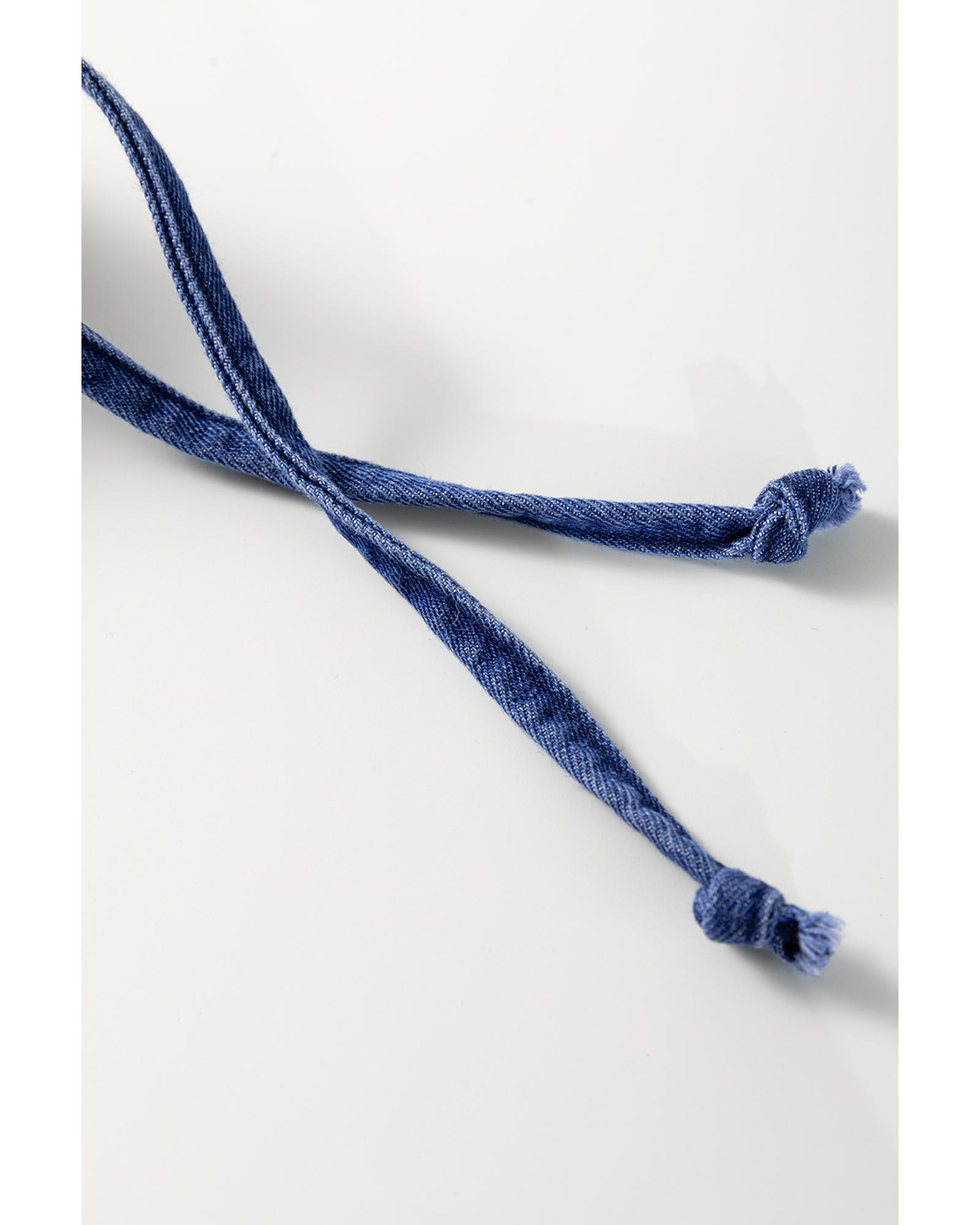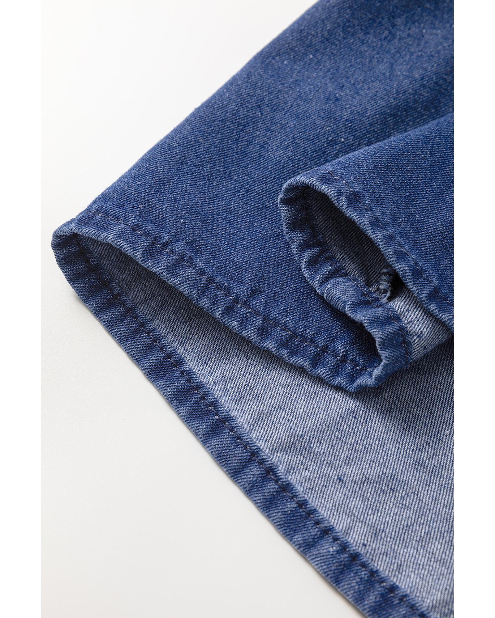 Blue Drawstring High Waist Puff Sleeve Denim Mini Dress – L
