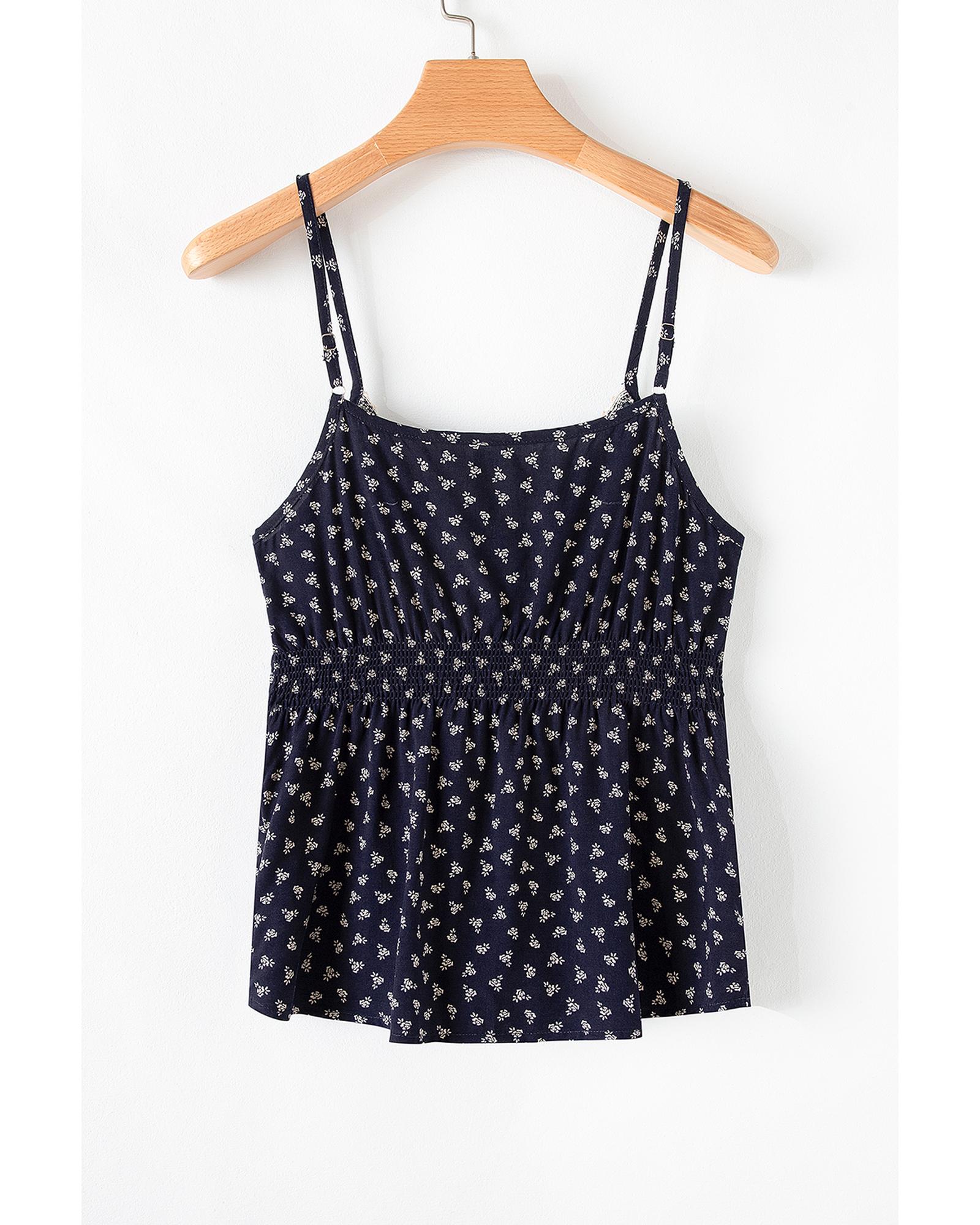 This stylish tank top features a delicate spaghetti strap design with a flattering V neckline. The elegant blue floral print adds a feminine touch, making it suitable for casual or dressier occasions. The buttoned details enhance its sophisticated appearance, while the breezy silhouette ensures comfort throughout the day.