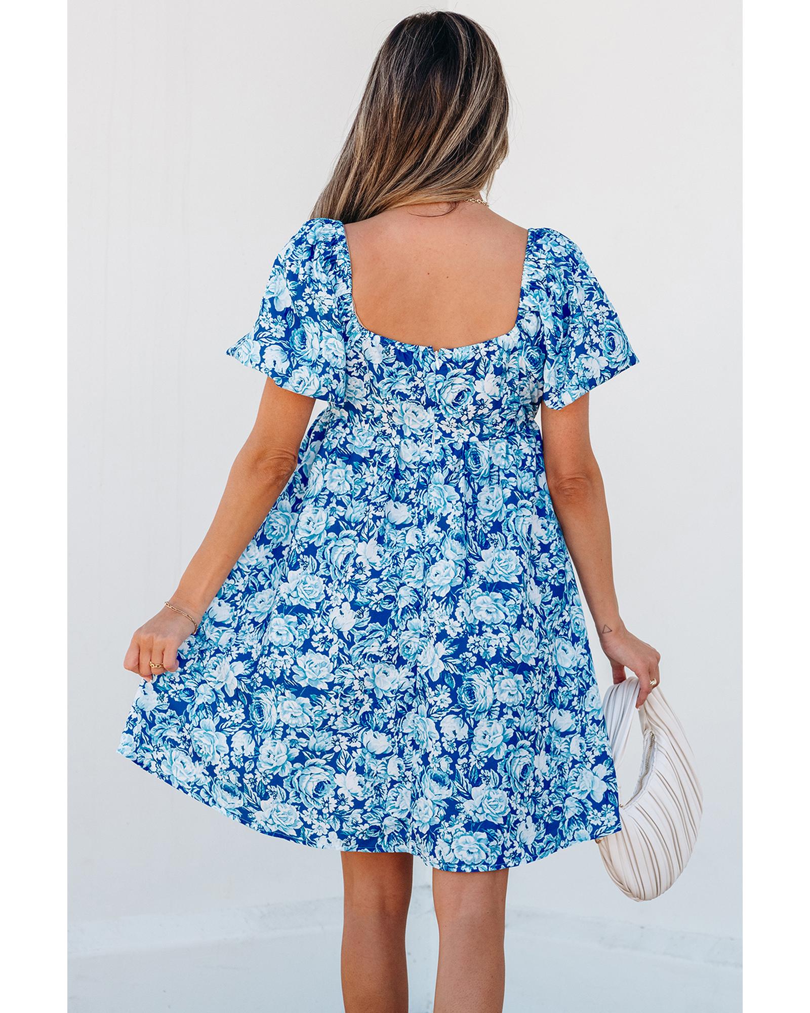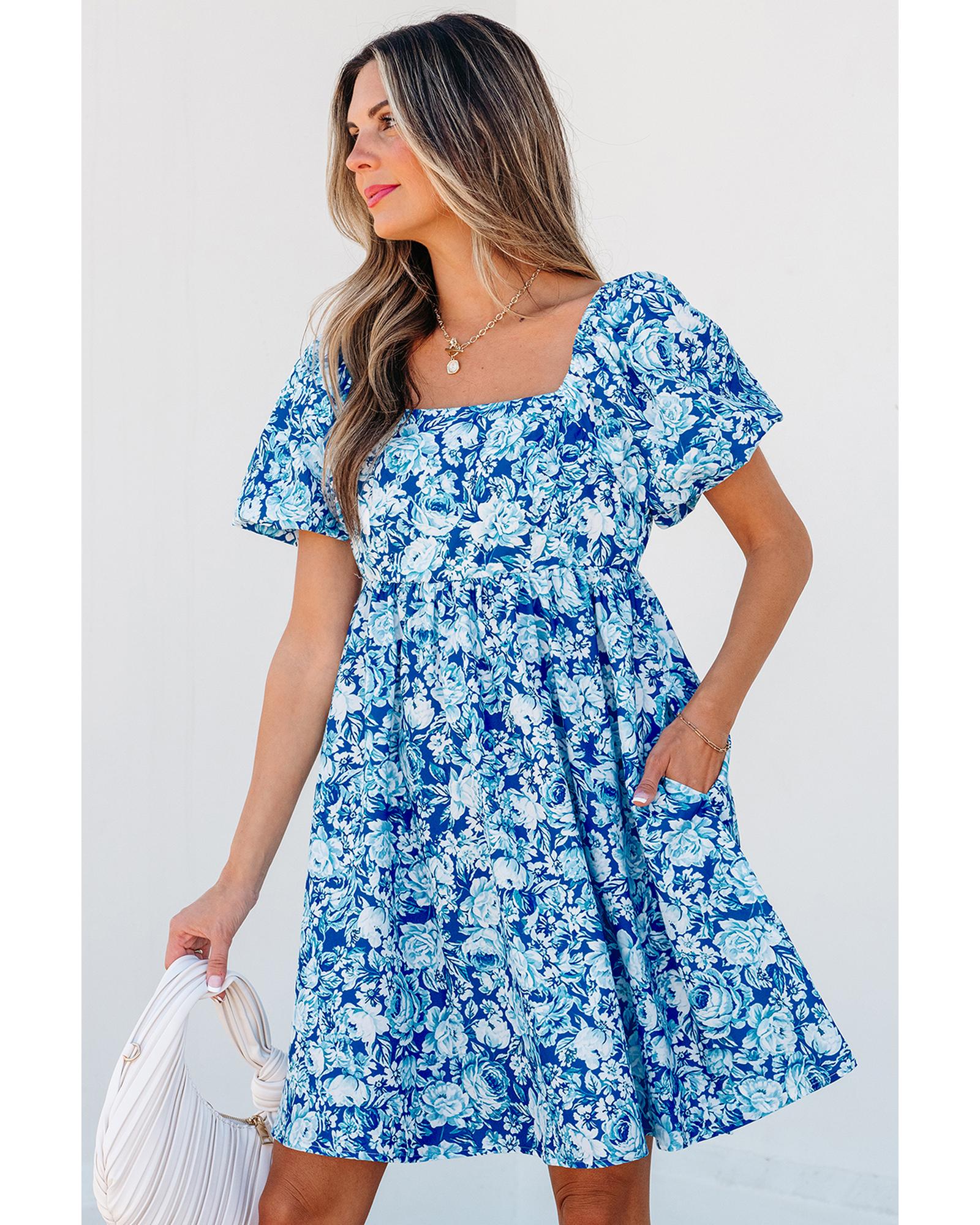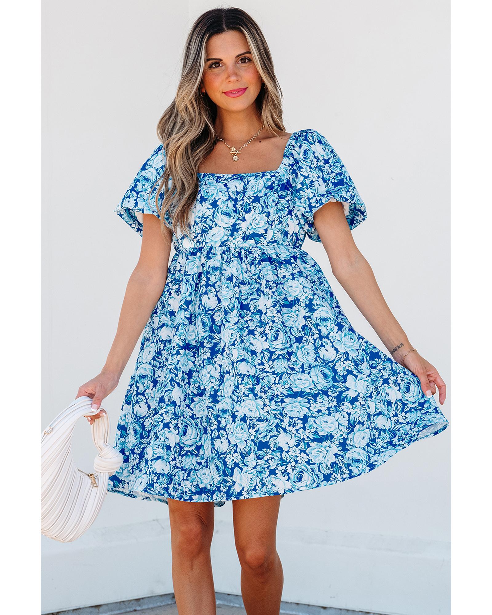 - 1 x Blue Floral Puff Sleeve Babydoll Mini Dress