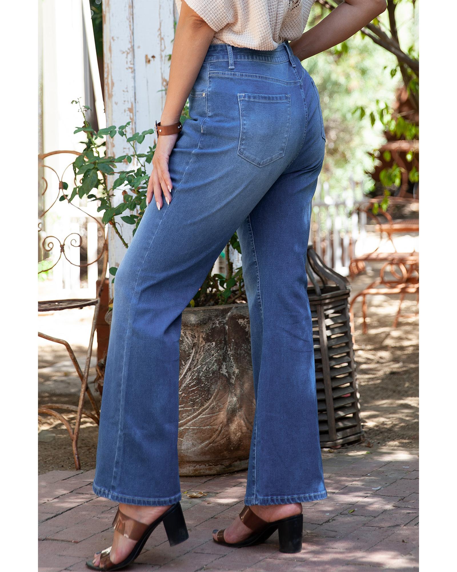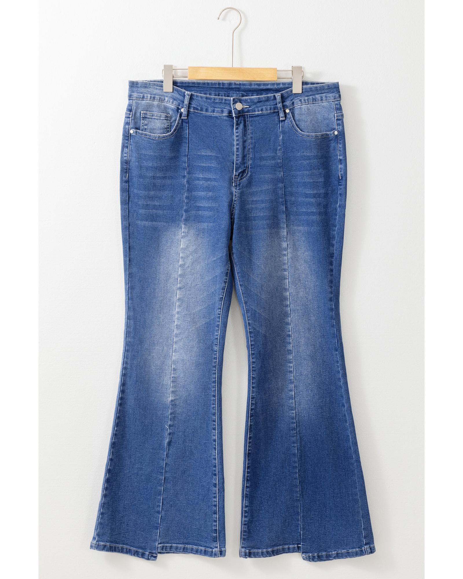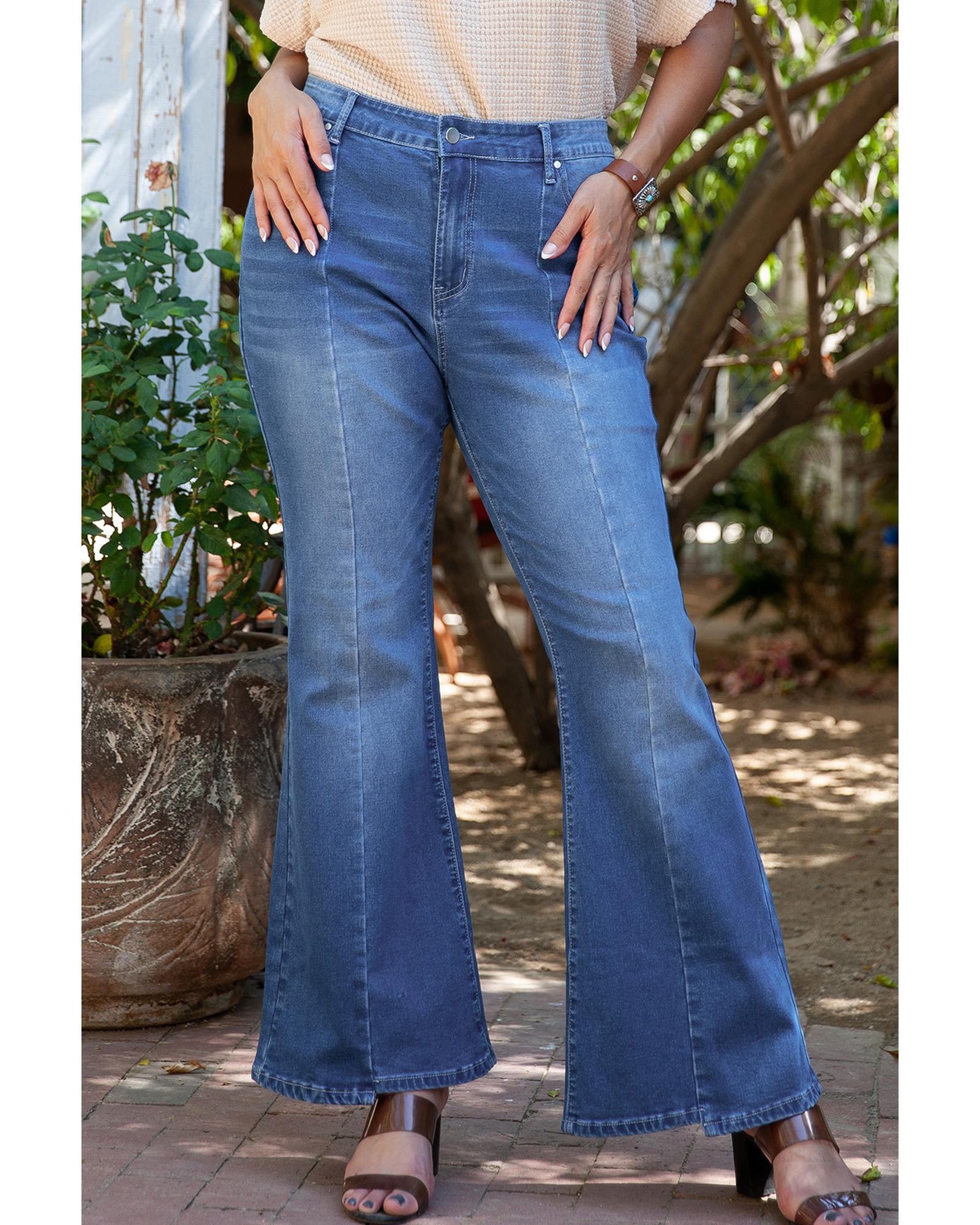 Blue Plus Size Exposed Seam High Waist Flare Jeans – 2X
