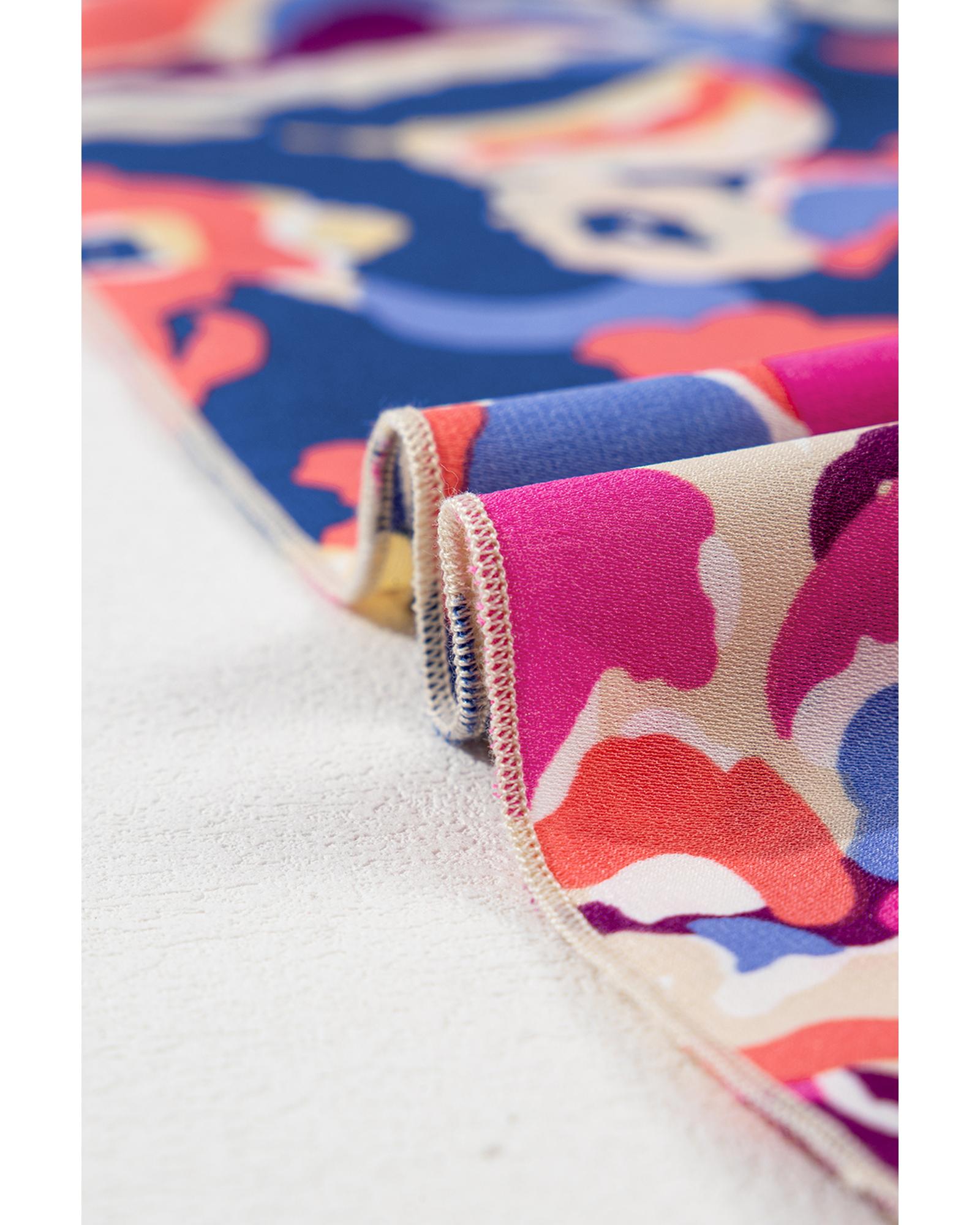 This stylish mini dress features a floral print design with ruffled accents and trendy 3/4 sleeves, offering a feminine and fashionable look. Its plus size design ensures a comfortable fit for various body types, making it suitable for different occasions.