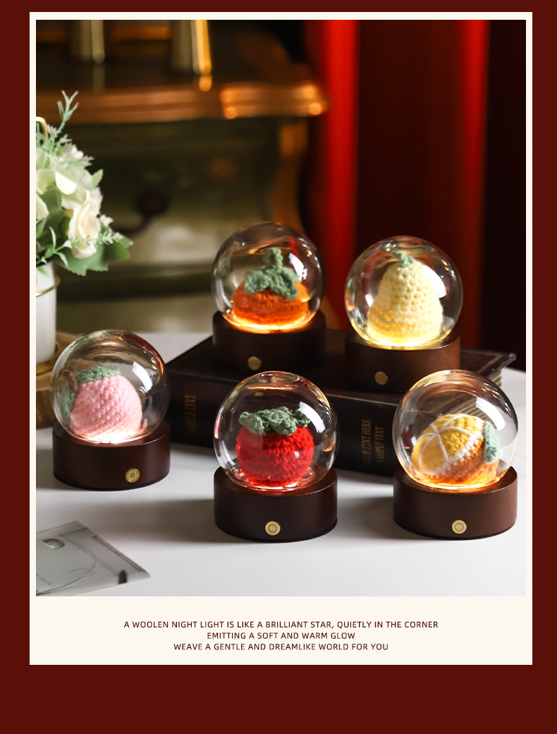 - 1 x crochet flower LED night light with glass dome and wooden base