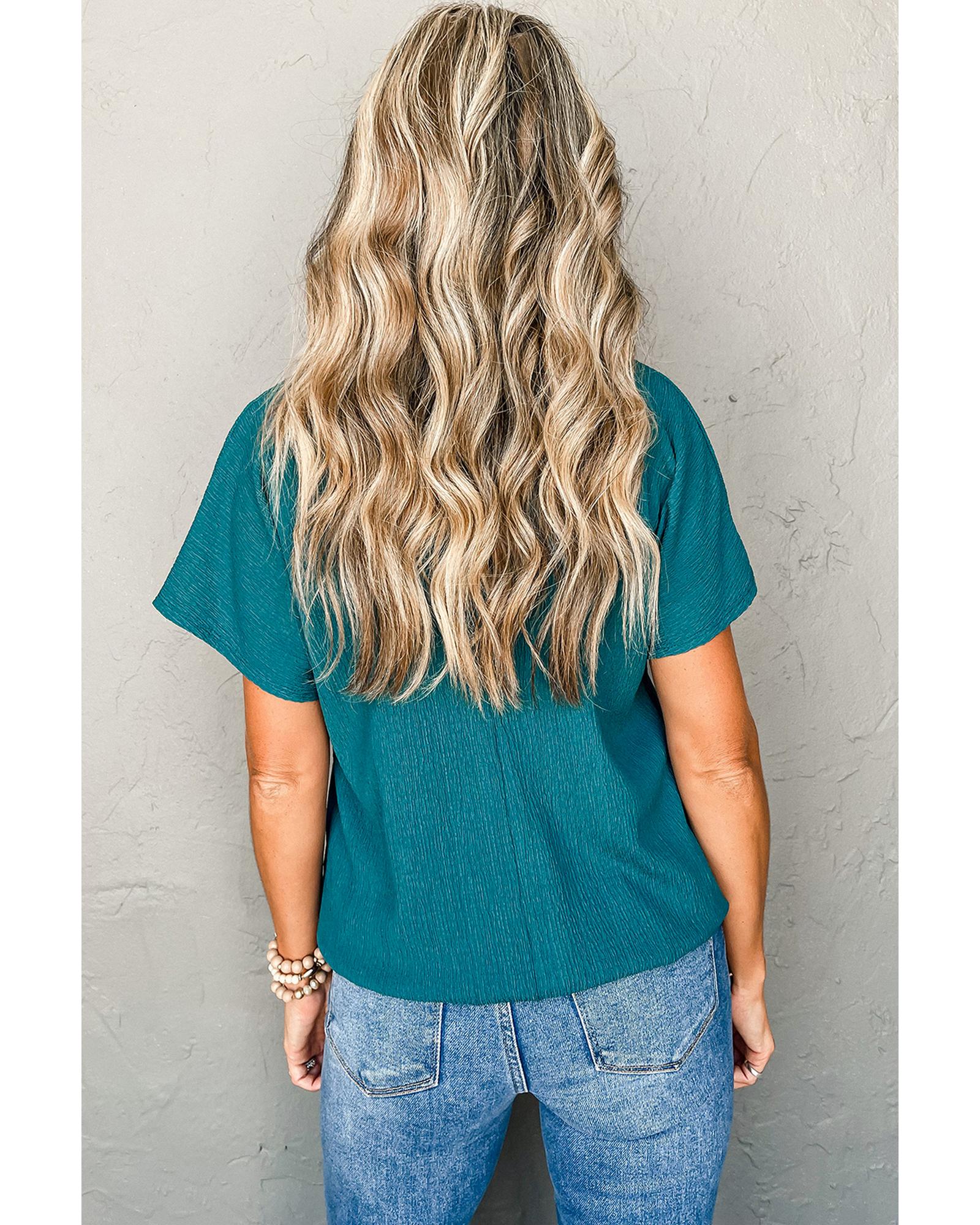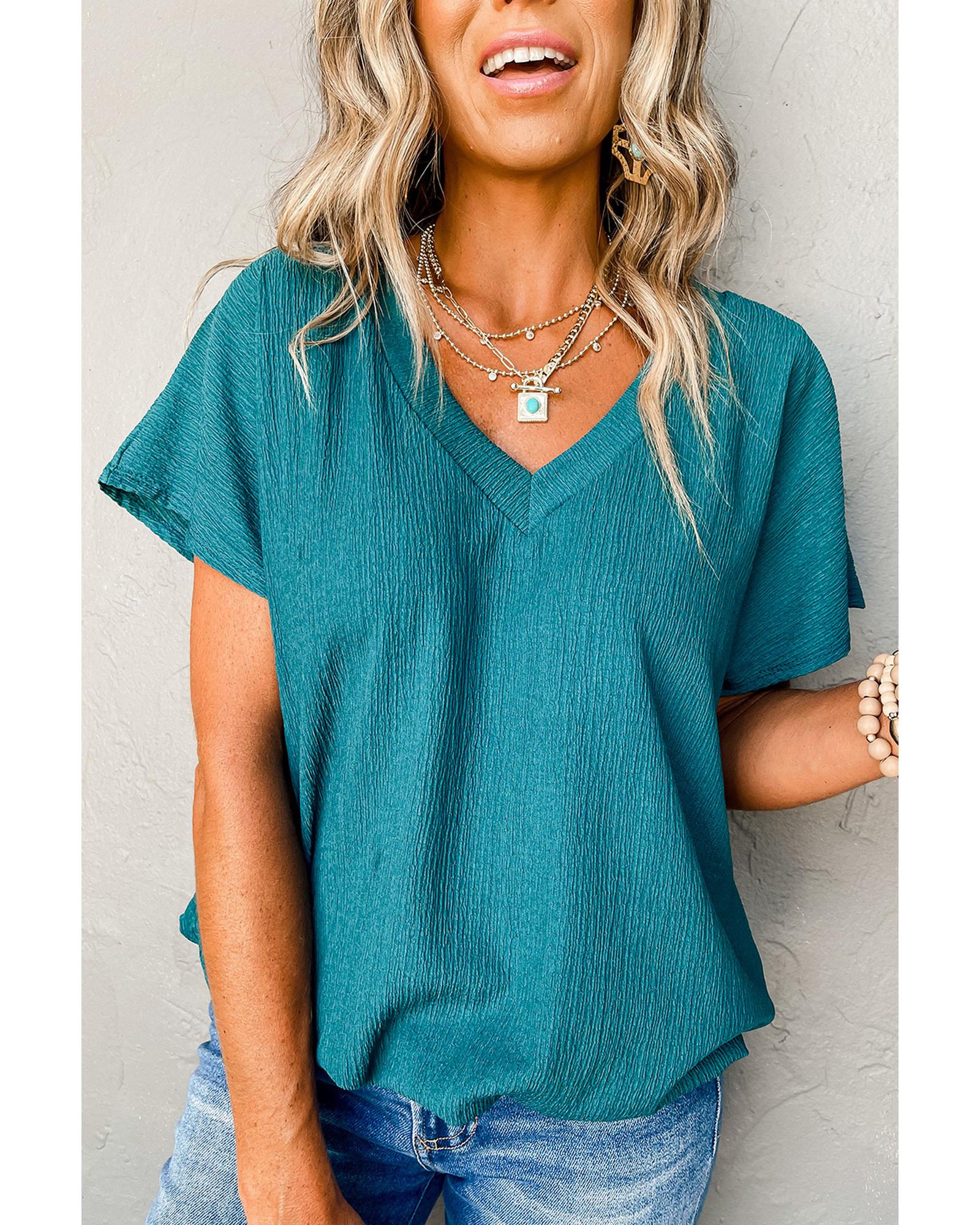 Blue Sapphire Crinkled V Neck Wide Sleeve T-shirt – M