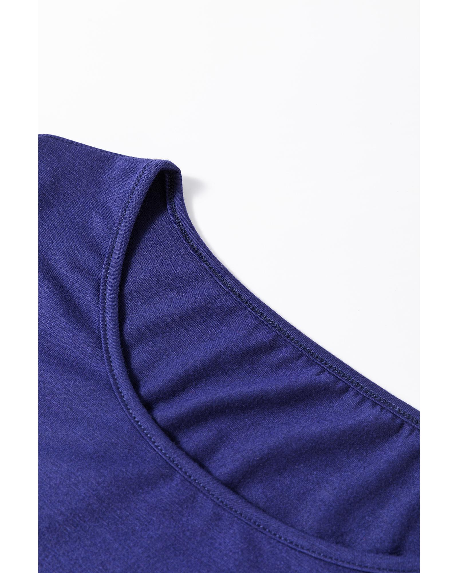 This two-piece lounge set features a solid blue top and festive Christmas pants, designed for a comfortable and stylish holiday look. The set combines a cozy long sleeve top with casual pants, making it perfect for relaxing at home or casual outings during the holiday season.