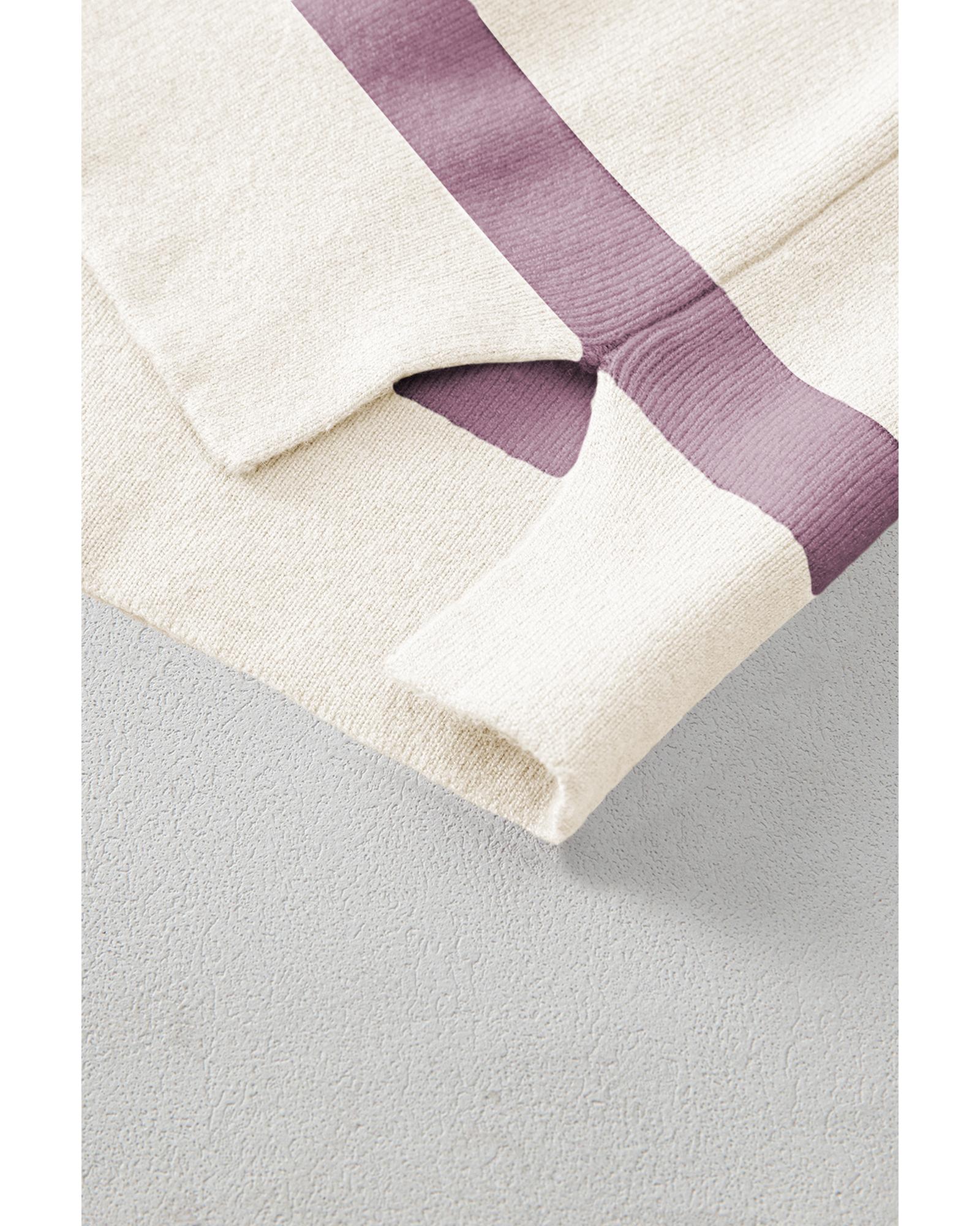 White Colorful Edge Quarter Zip Drop Shoulder Sweater - L