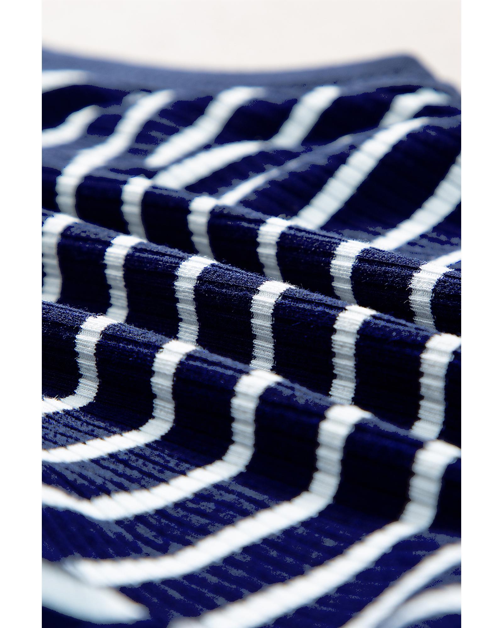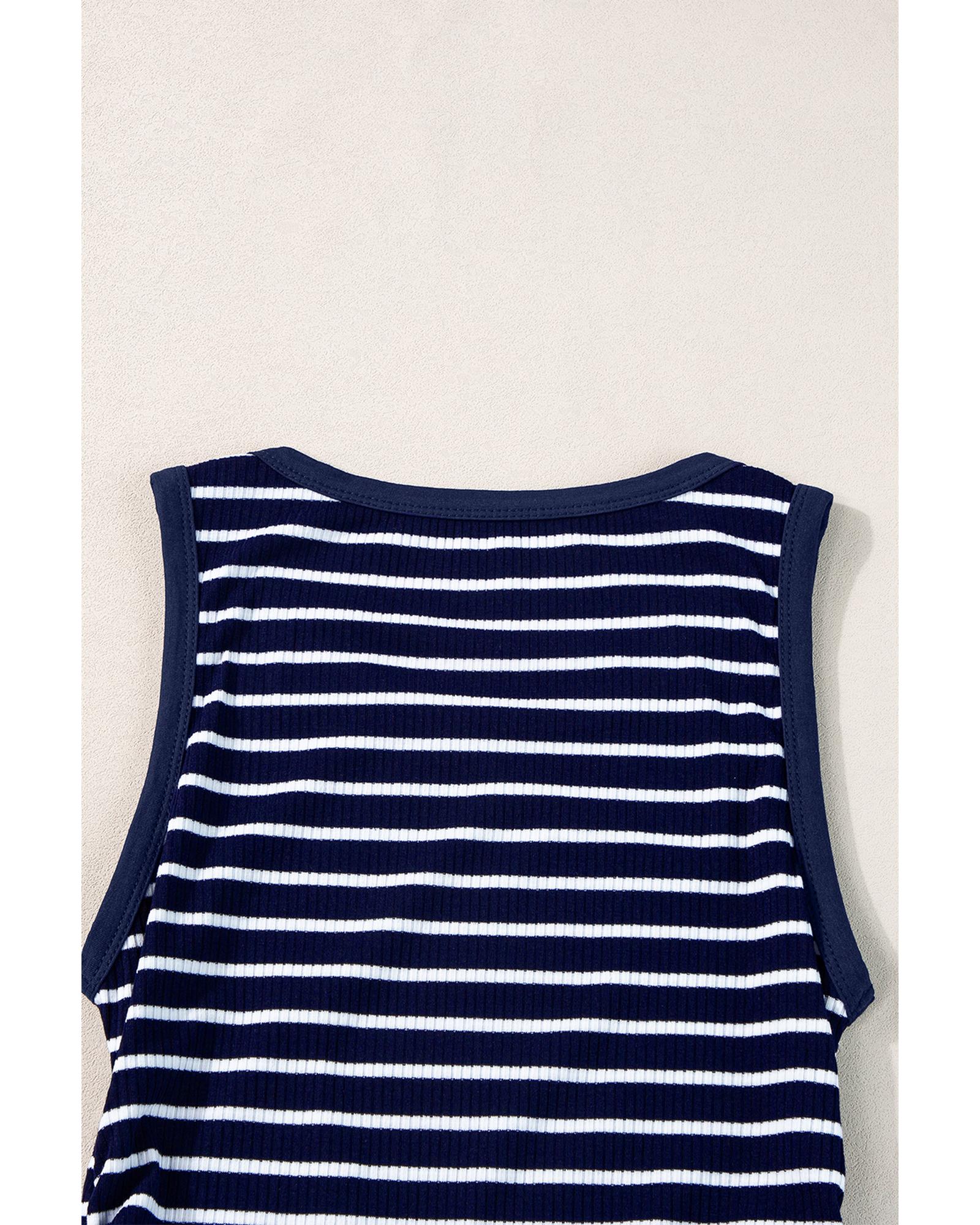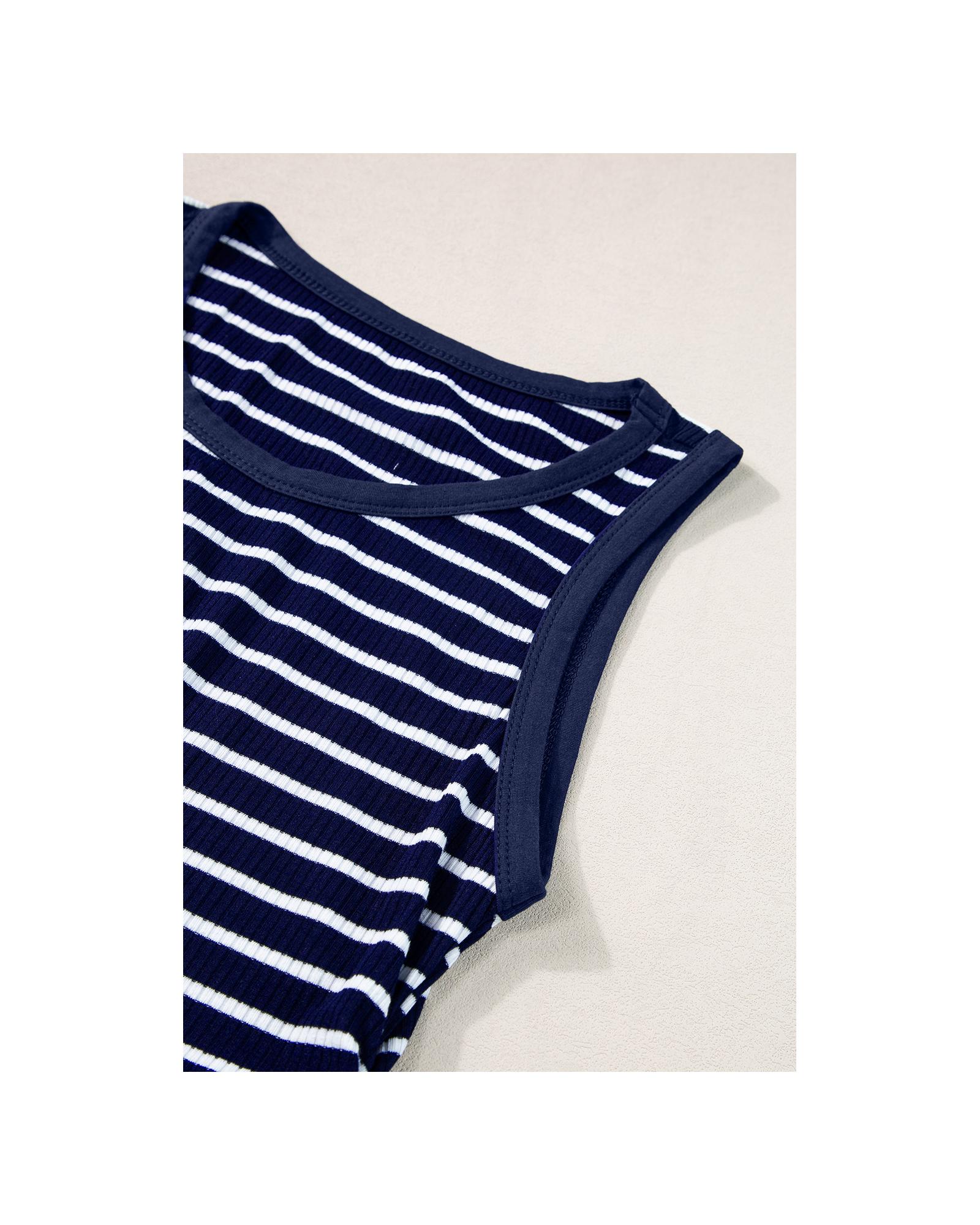 This sleeveless slim top features a stylish striped pattern with contrasting trims, designed to provide a trendy and fitted look. Made from high-stretch fabric, it contours your shape beautifully while maintaining comfort and simplicity in design.