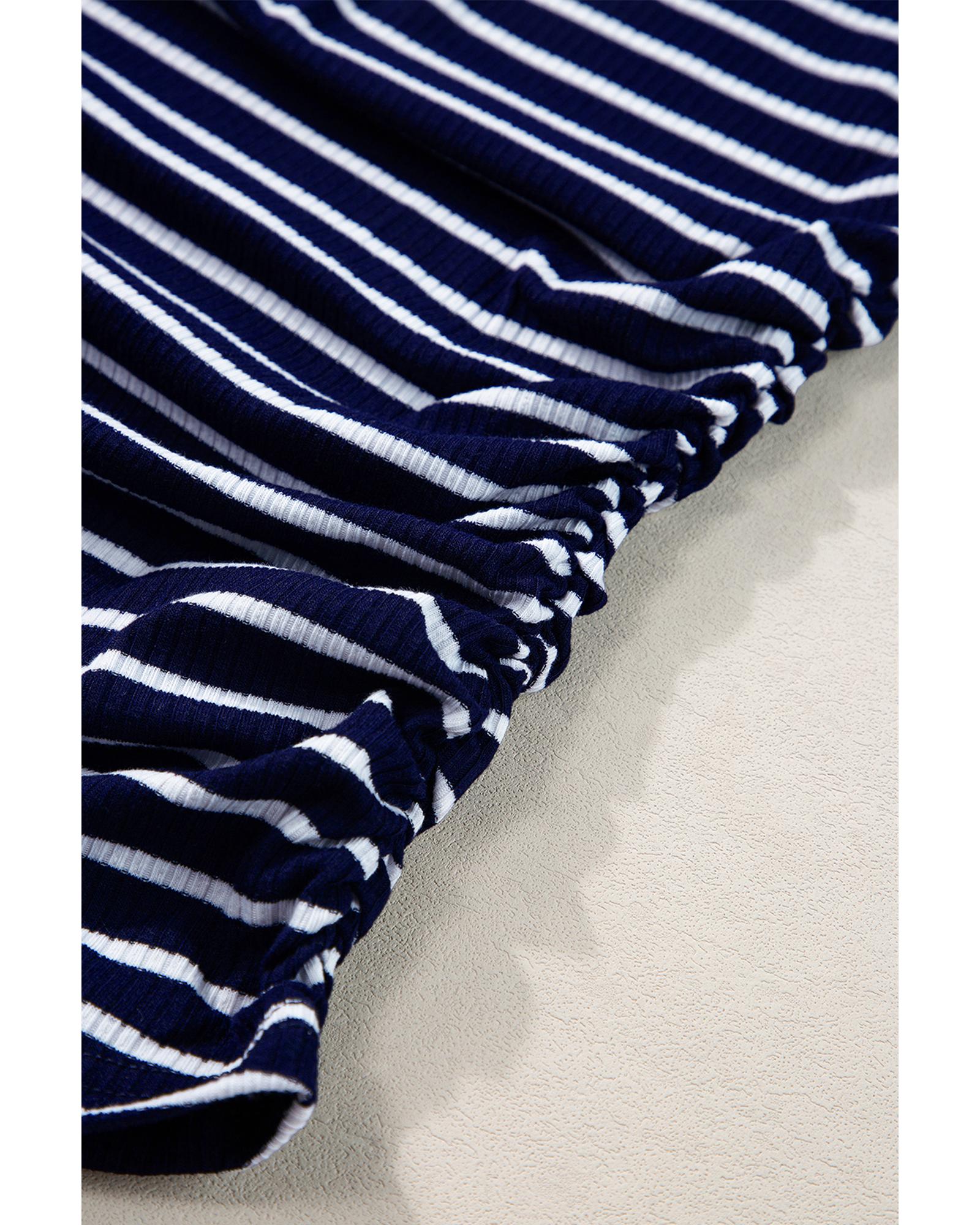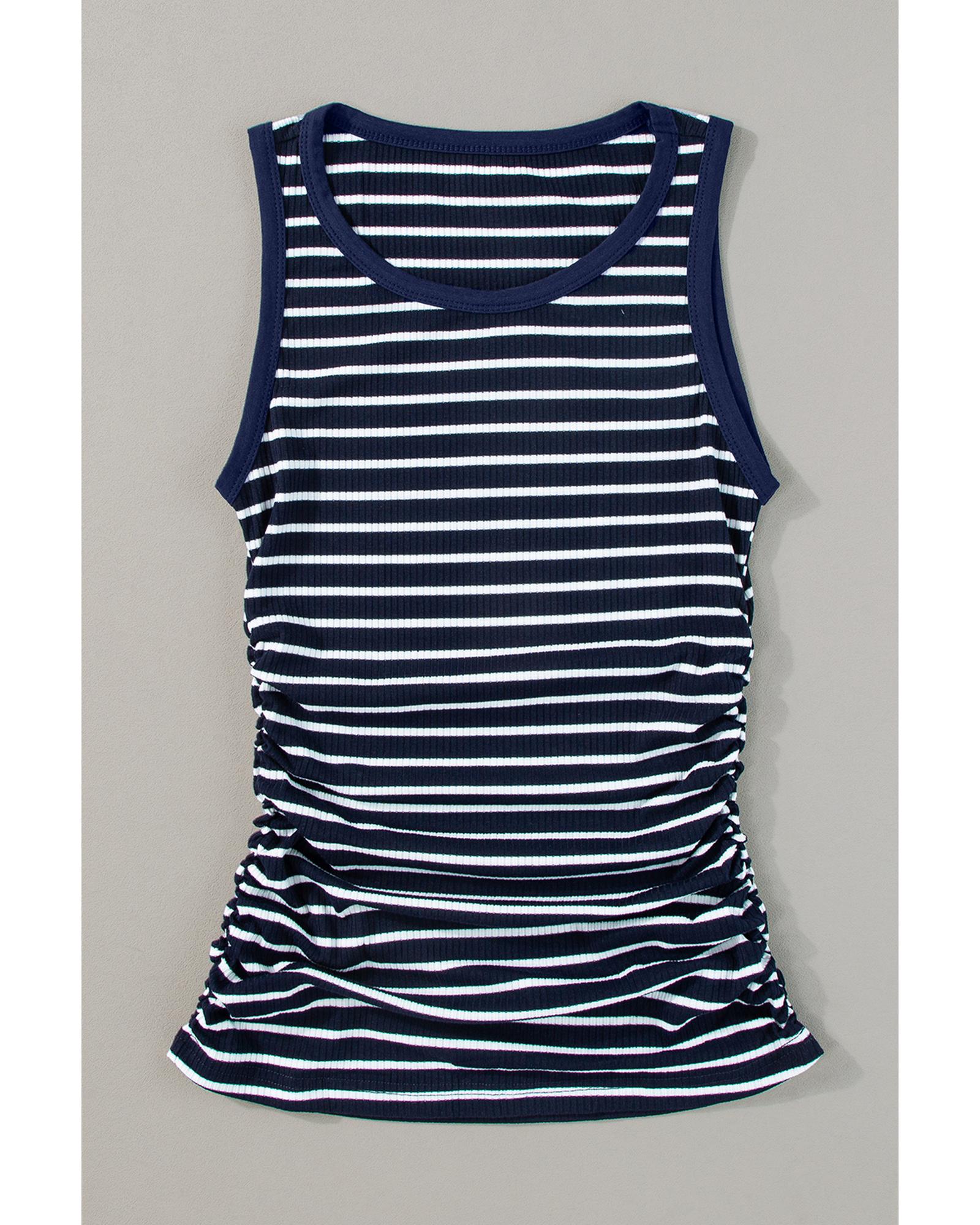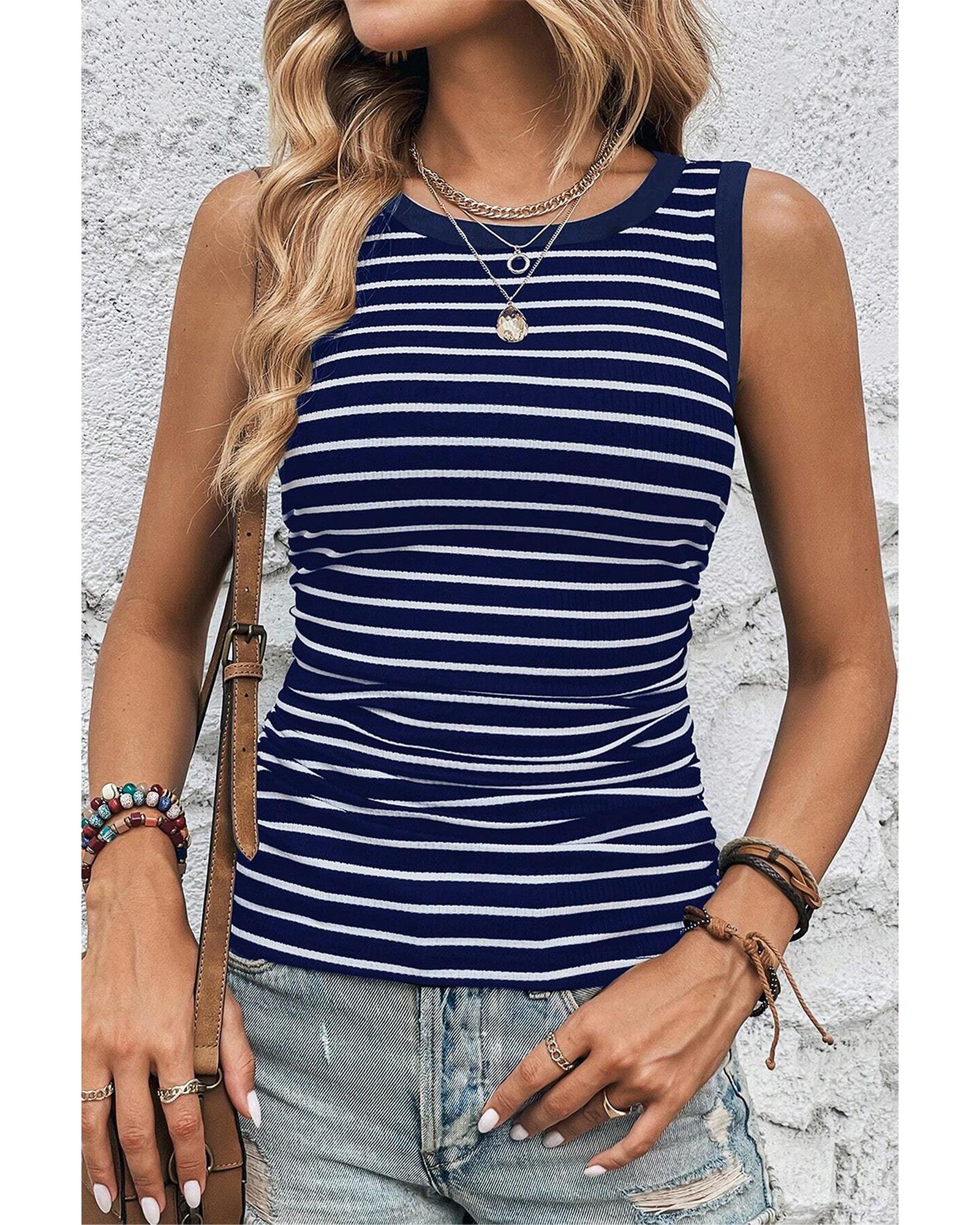 Blue Stripe Contrast Round Neck Sleeveless Slim Top – XL