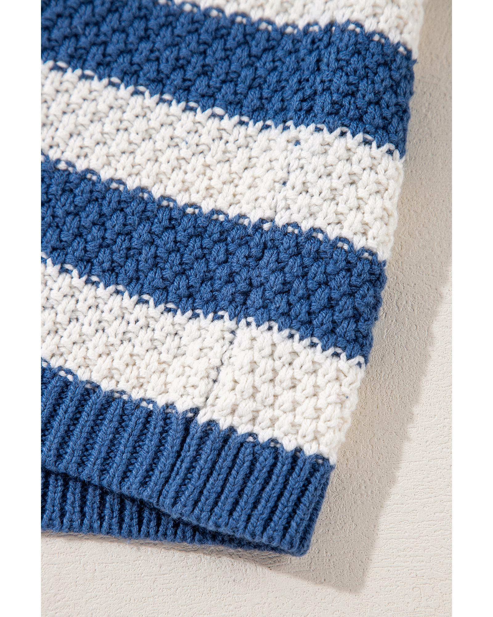 Blue Stripe V Neck Pocketed Drawstring Hooded Sweater – 2XL