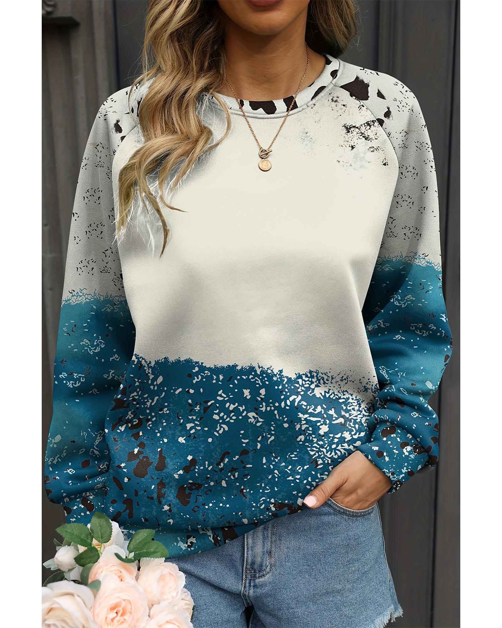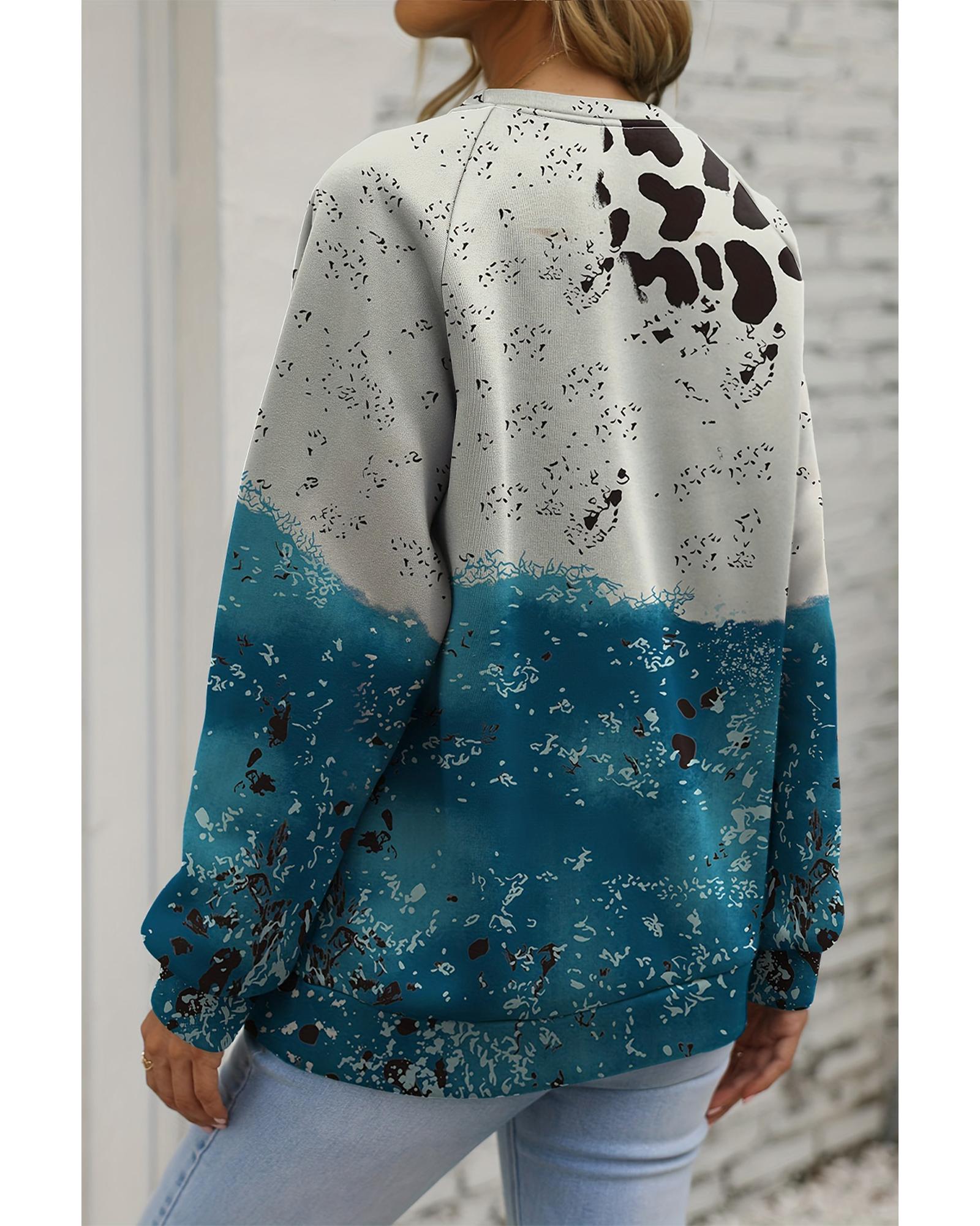 Blue Tie Dye Cow Color Block Pullover Sweatshirt – L