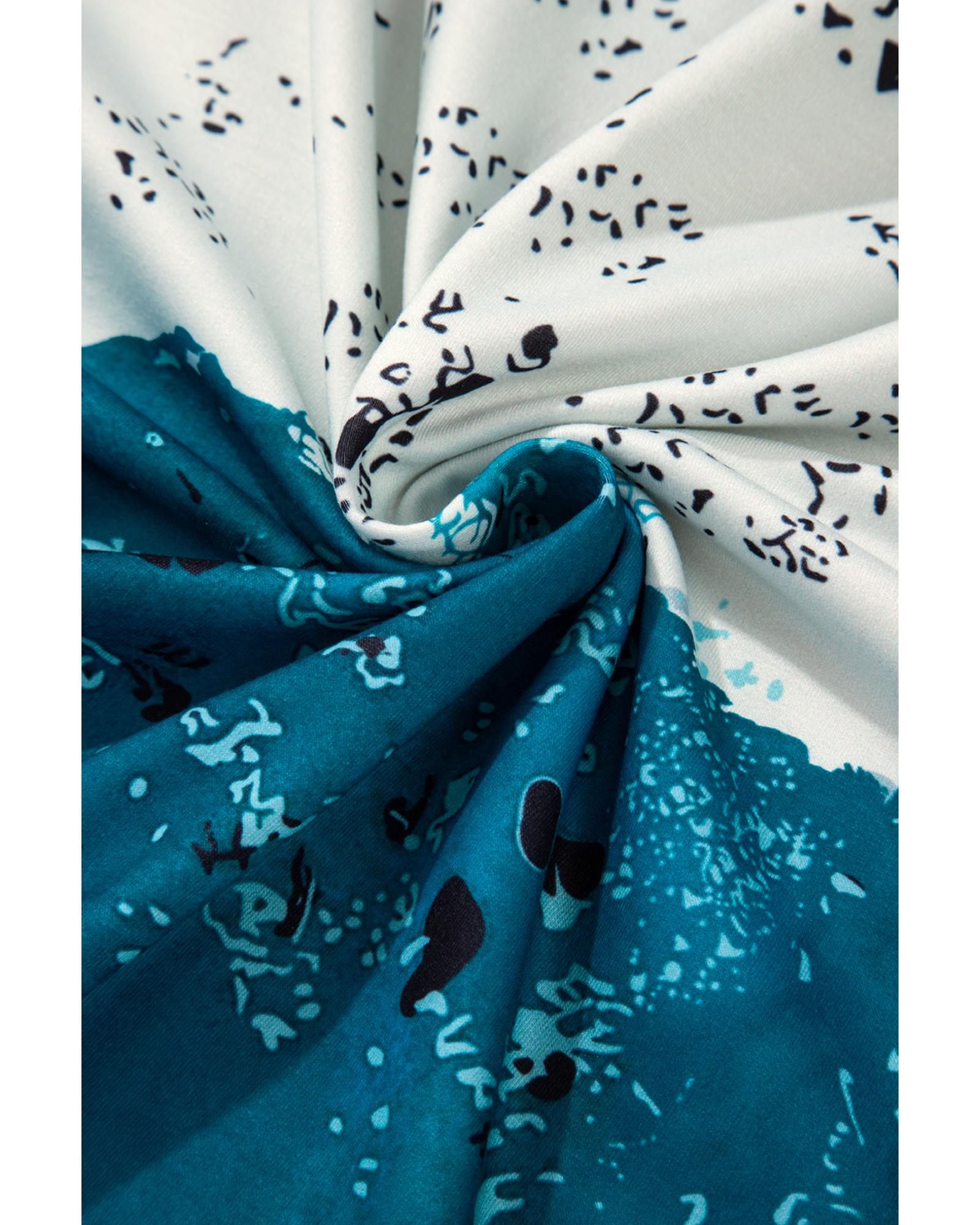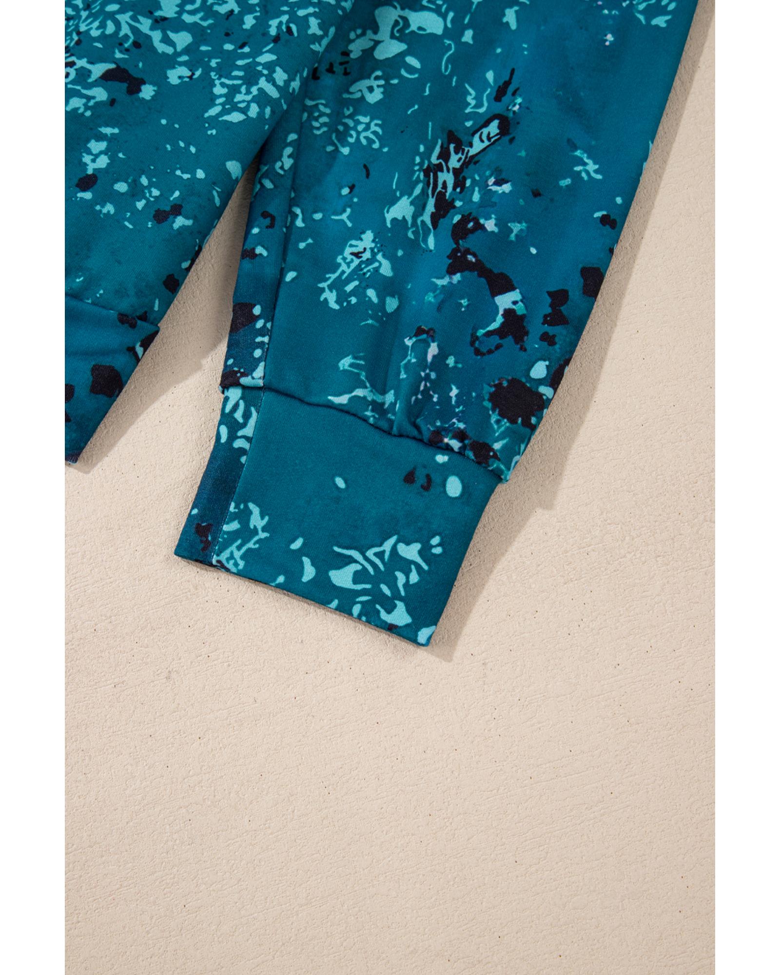 Blue Tie Dye Cow Color Block Pullover Sweatshirt – S