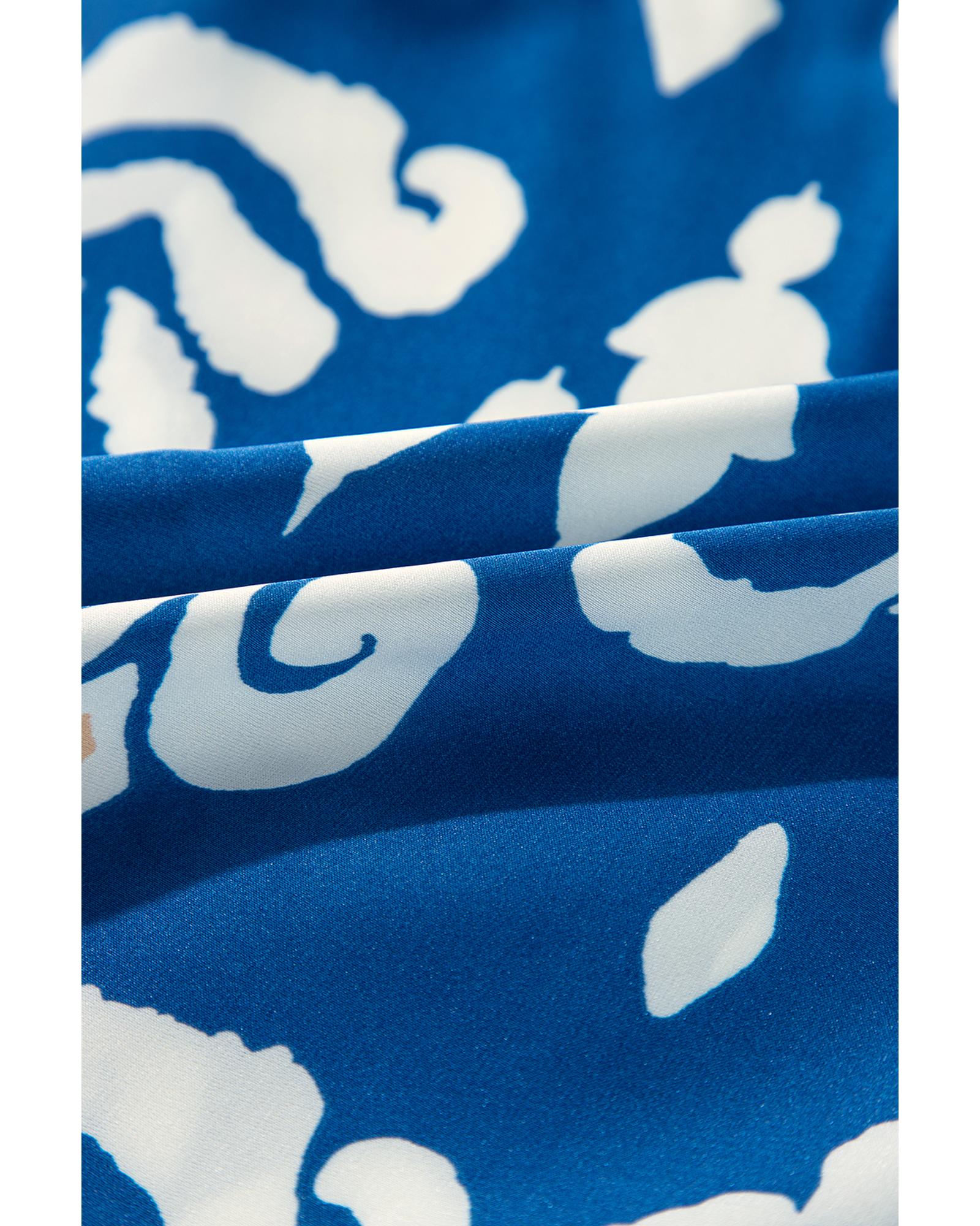 Blue Tribal Geometric Print 3/4 Sleeve Flowy Fit Blouse – XL