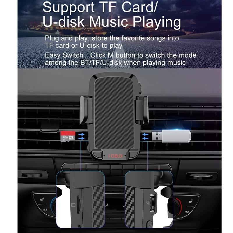 Bluetooth 5.0 Car Mp3 Player Fm Transmitter & Phone Holder