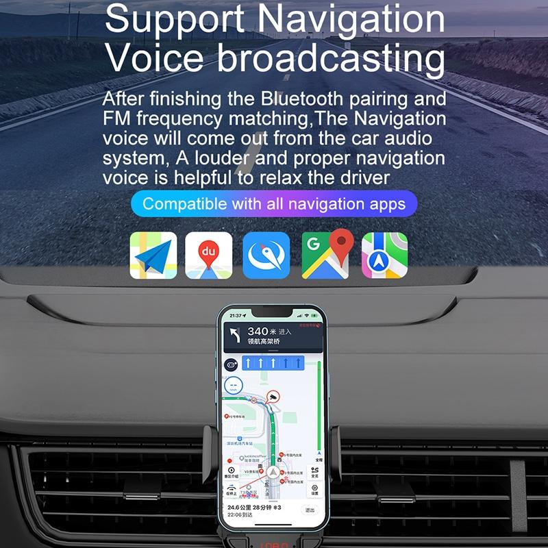 Package includes one Bluetooth 5.0 car MP3 player FM transmitter and phone holder.