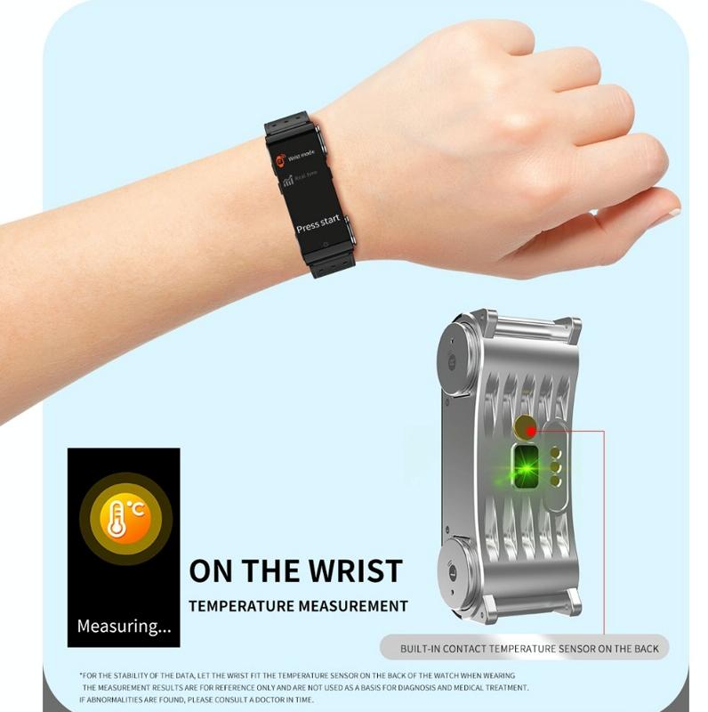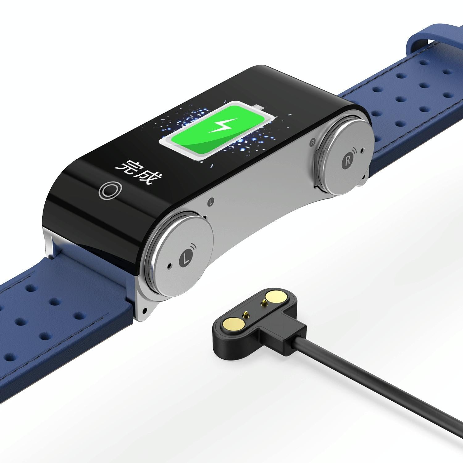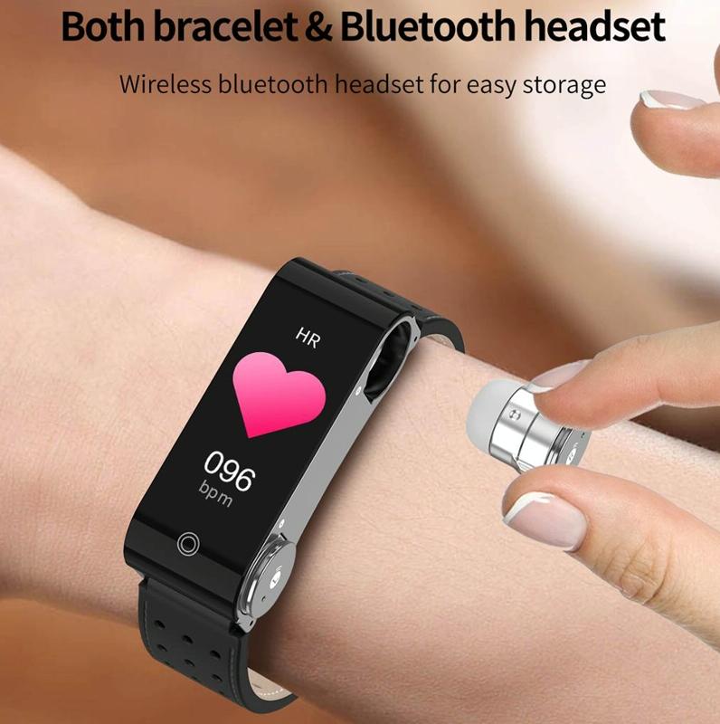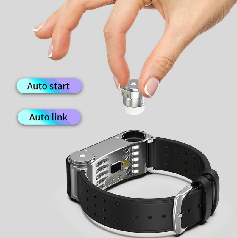 This Bluetooth headset bracelet combines health monitoring and communication features in a sleek design. It offers heart rate, blood pressure monitoring, and temperature measurement, making it a versatile accessory for health tracking and staying connected.