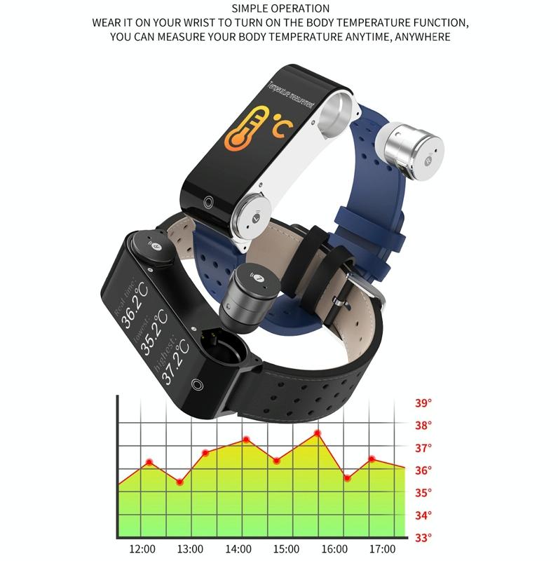 Bluetooth Headset Bracelet With Hr / Bp Monitoring & Temp. Measurement – Black