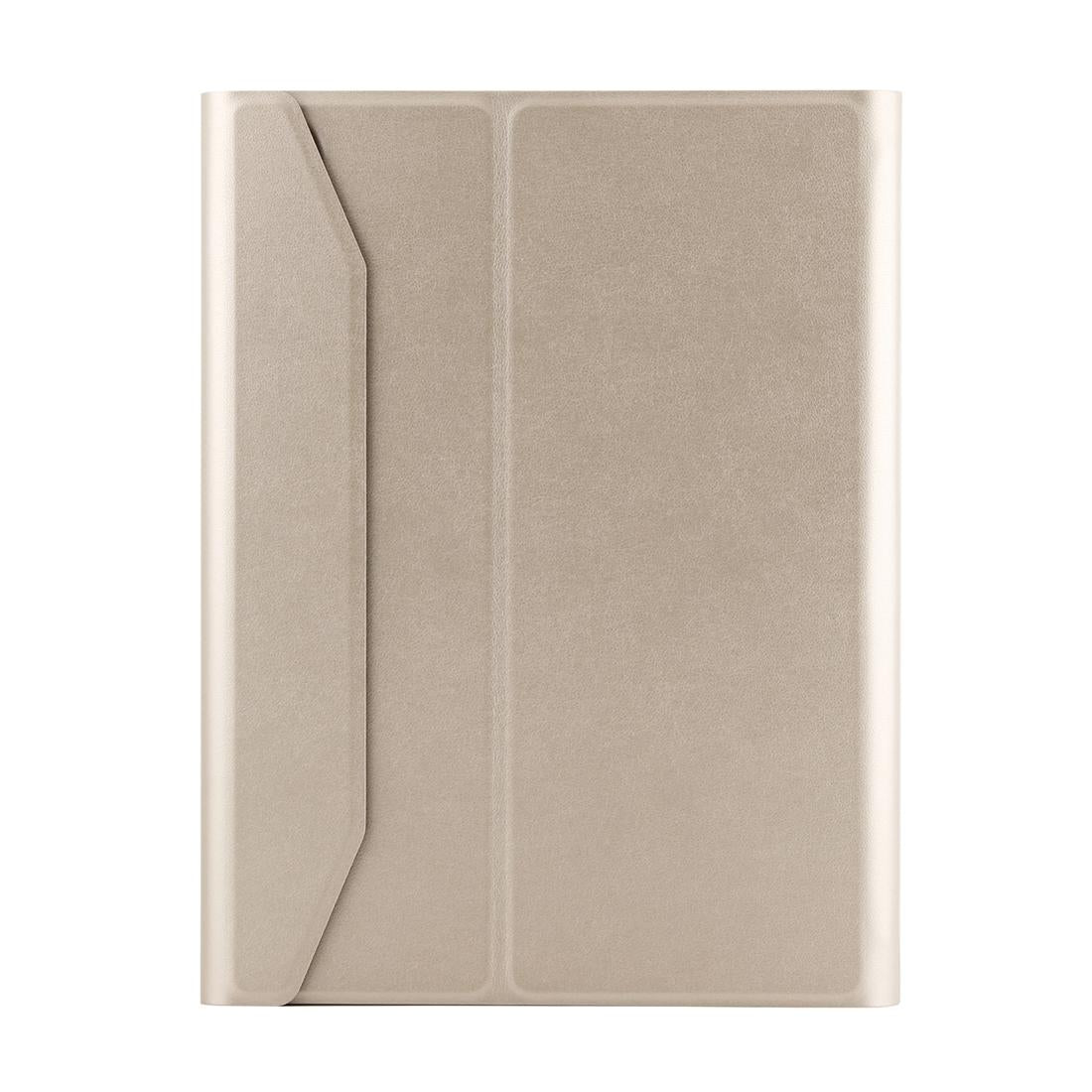 The package includes a detachable Bluetooth 3.0 aluminum alloy keyboard and a leather tablet case with pen slot, water-repellent surface, three-gear angle adjustment, magnetic closure, and sleep function.
