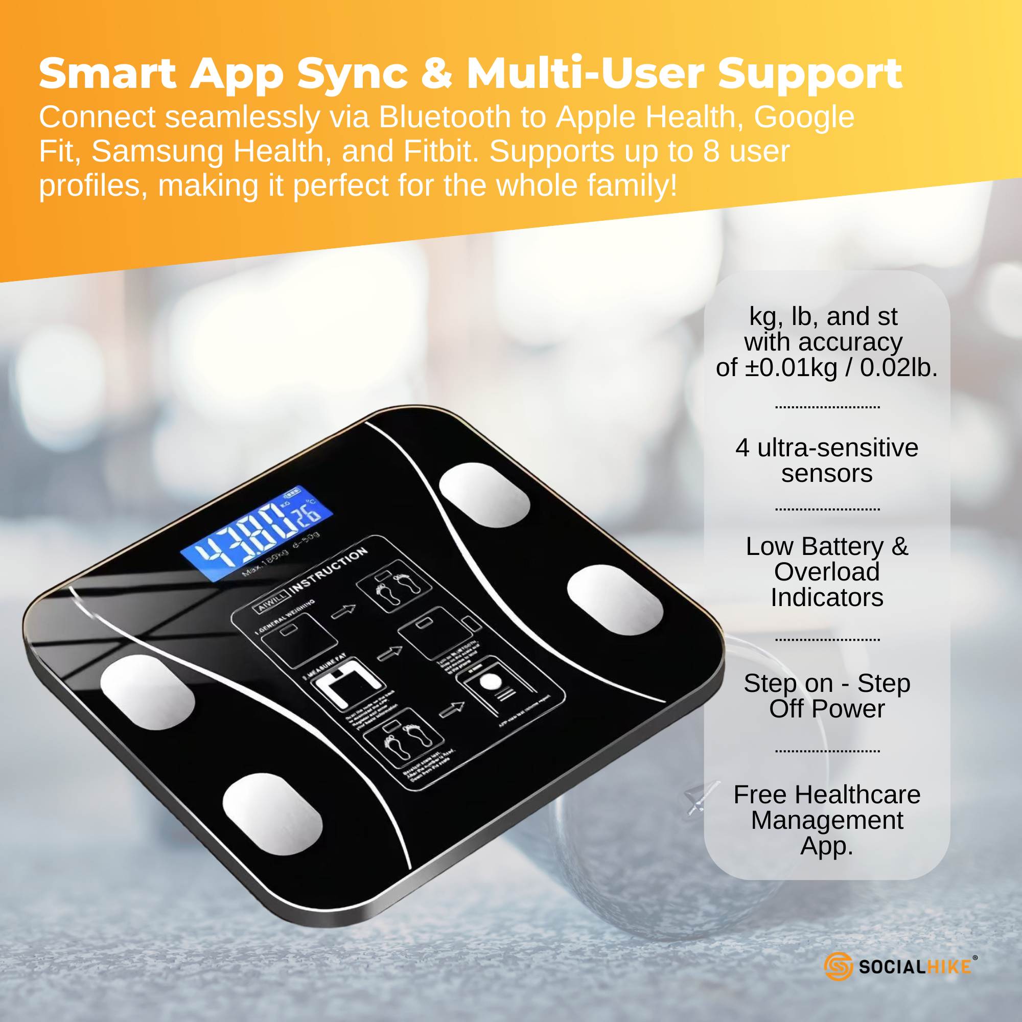 Bluetooth Smart Body Fat Scale Black – Digital BMI Weight USB Recharge with App