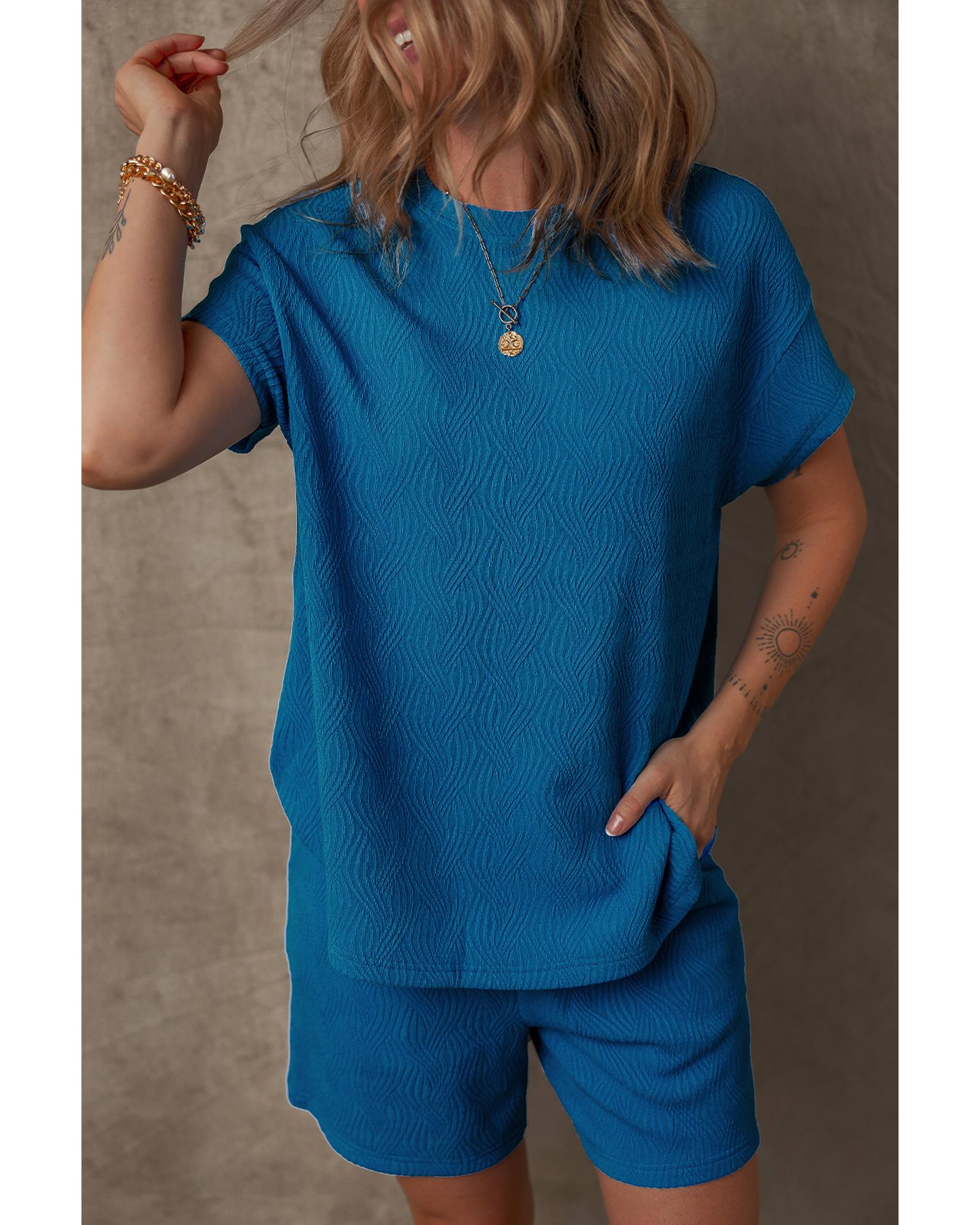 This solid textured crew neck short set offers a stylish and comfortable option for everyday wear. Designed with versatility in mind, it features a classic crew neck and a coordinated set that is suitable for various occasions. The simple yet chic solid color and concise design make it a versatile addition to any wardrobe.