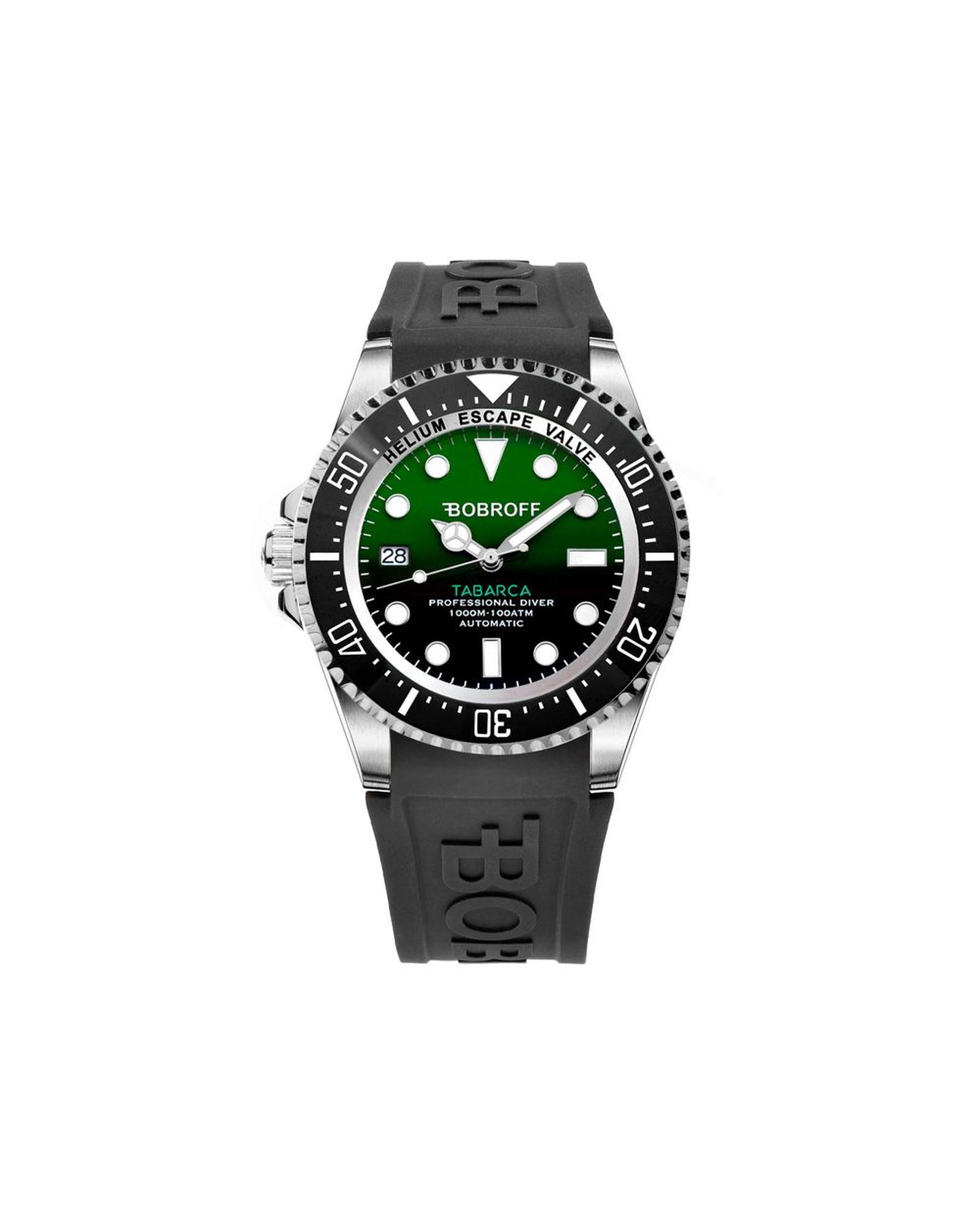 This men’s watch features a robust automatic mechanism with an elegant analog display. Crafted with a stainless steel case and a durable rubber strap, it combines functionality with a sleek design. The watch is designed for high water resistance and includes various specialized features suitable for diving and everyday wear.