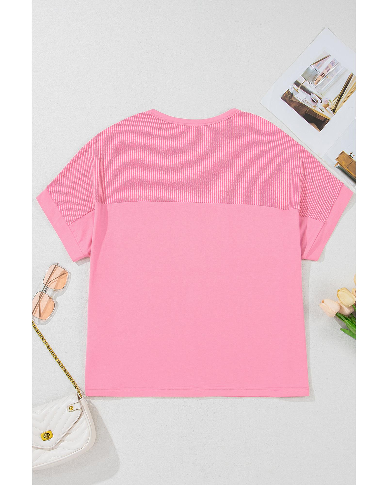 Bonbon Corded Patchwork Pocketed Plus Size T Shirt – 3X
