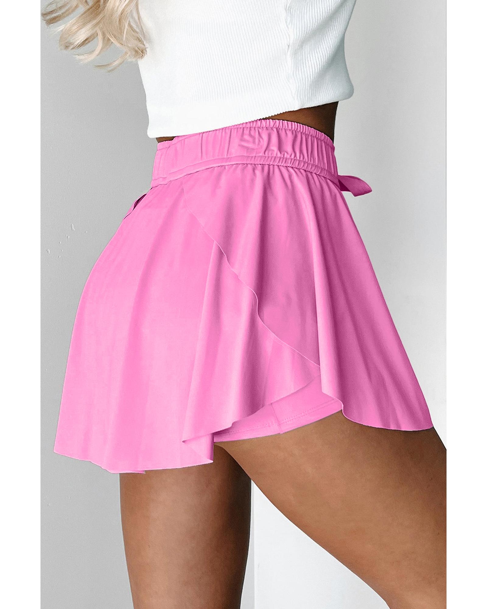 Bonbon Drawstring High Waist Lined Tennis Skorts – S
