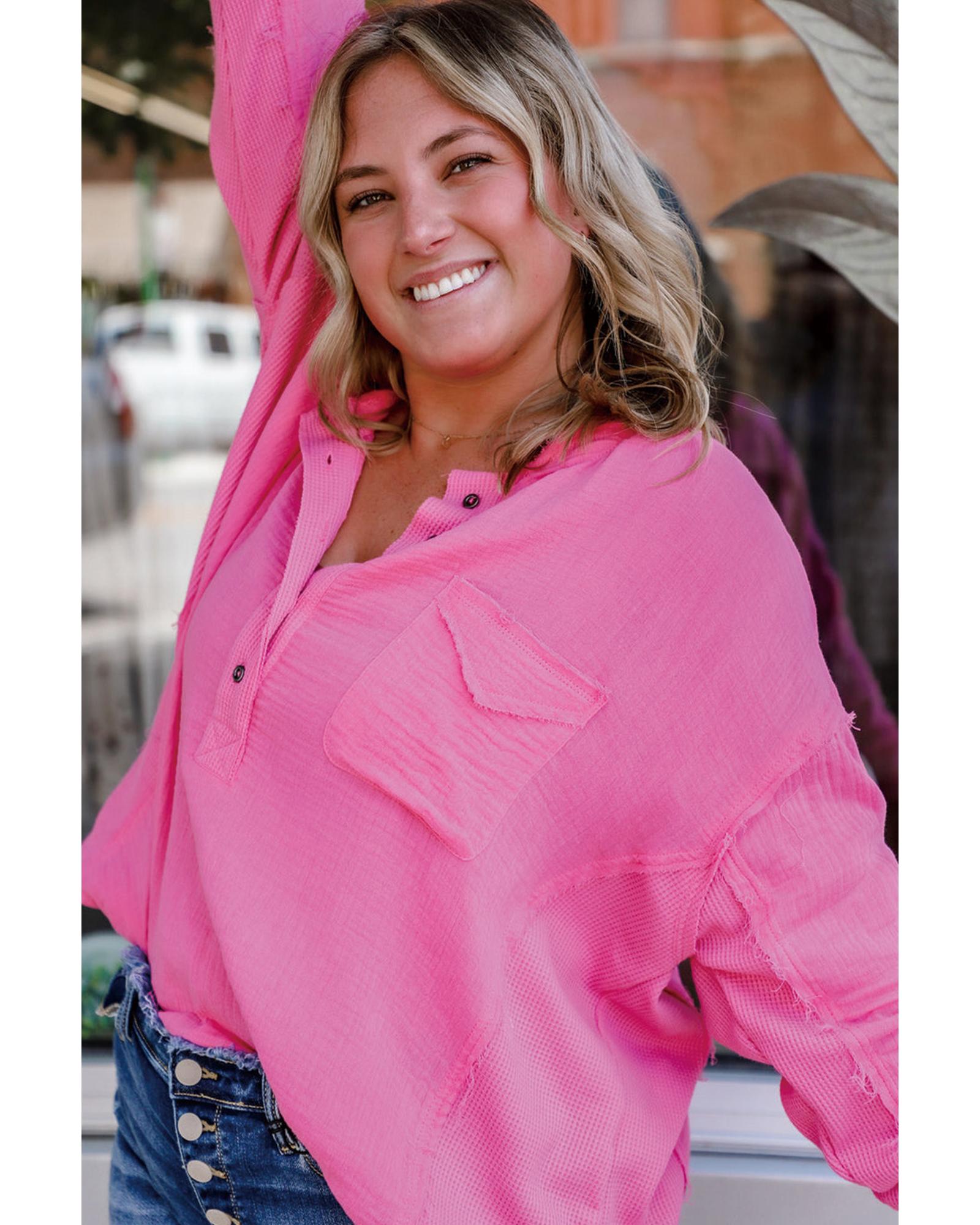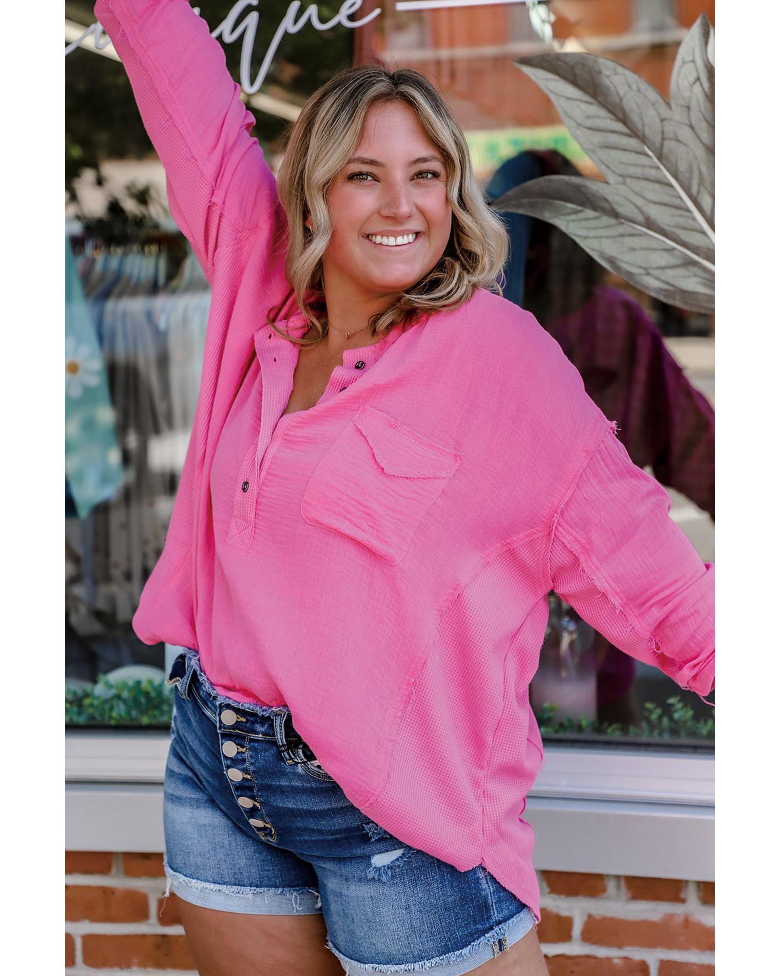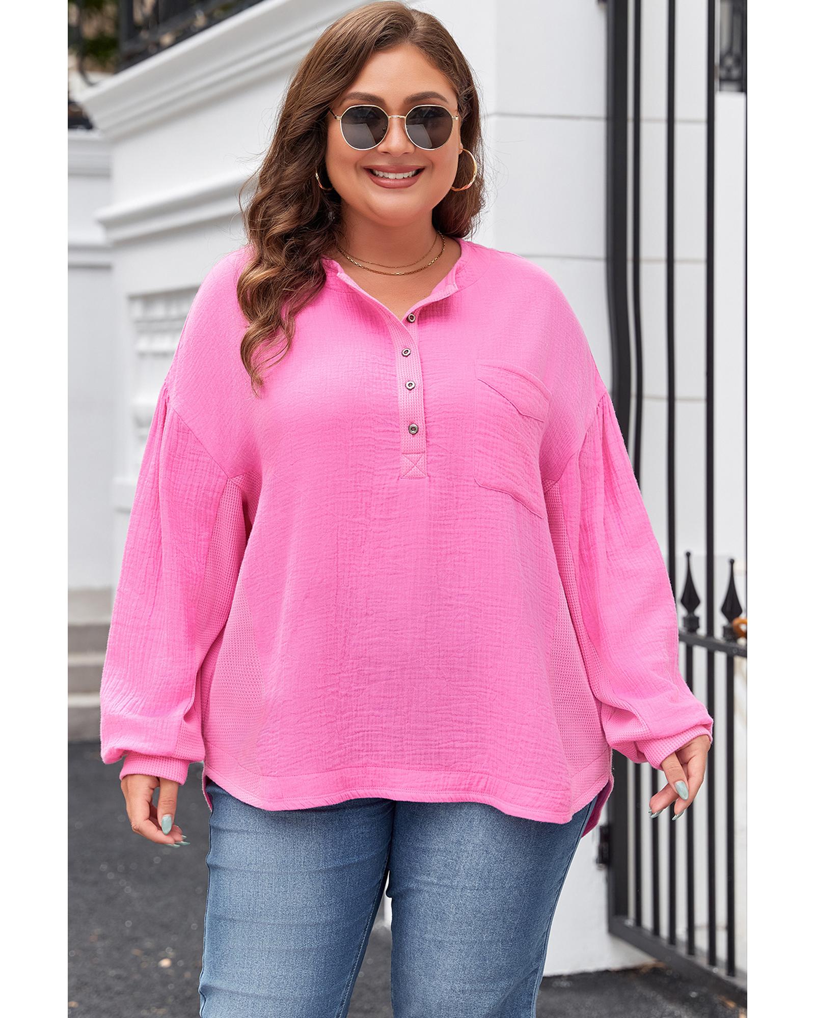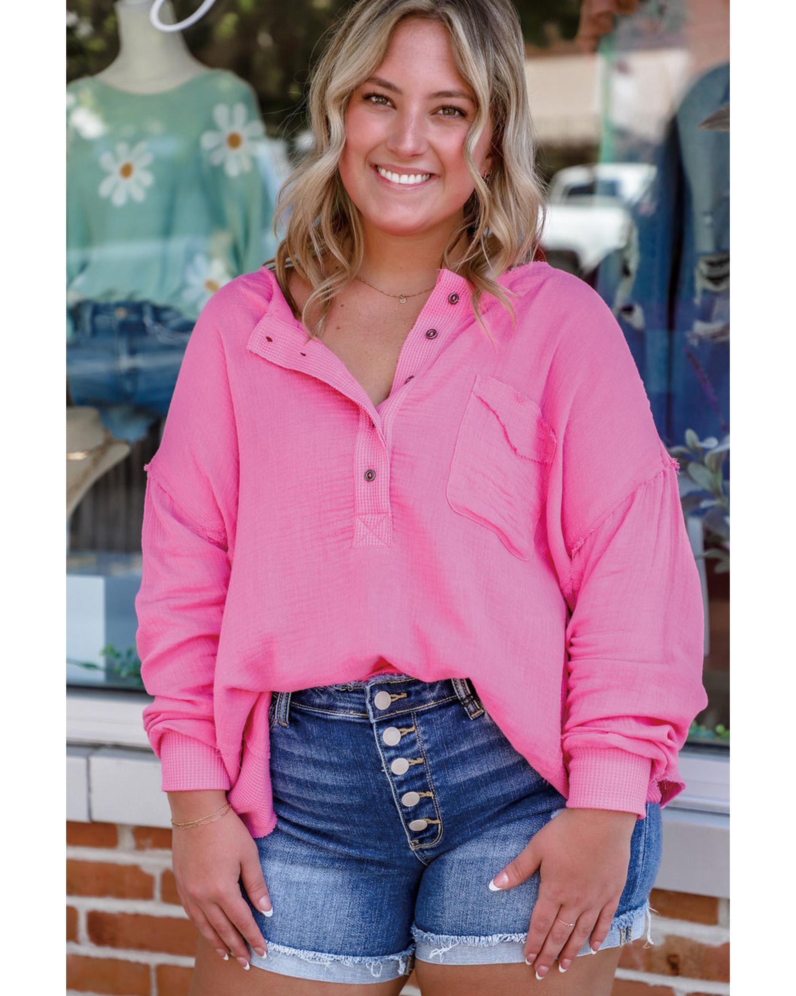 Bonbon Half Buttons Chest Pocket Drop Sleeve Plus Size Top – 1X