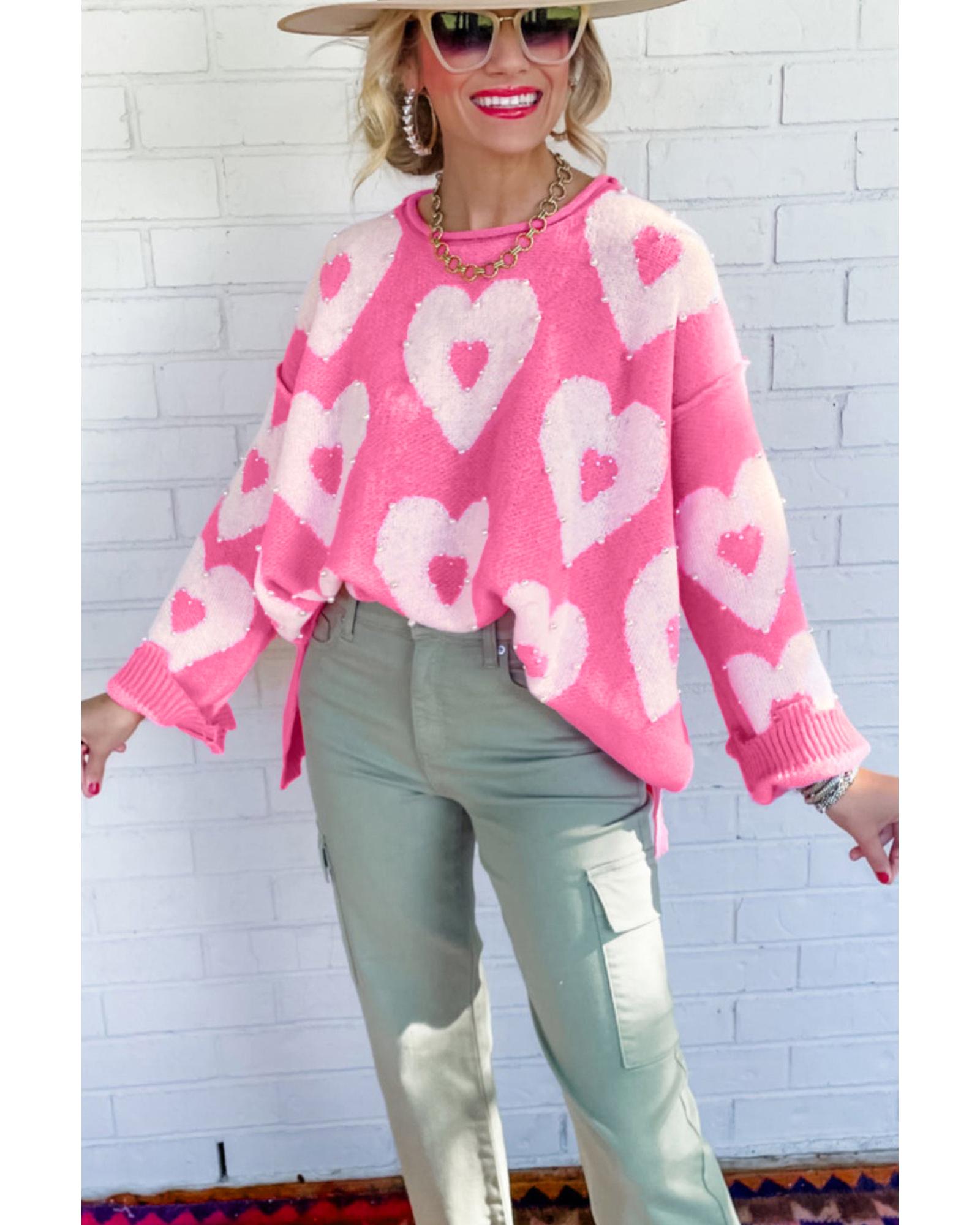 Bonbon Pearl Beaded Heart Drop Shoulder Sweater – XL