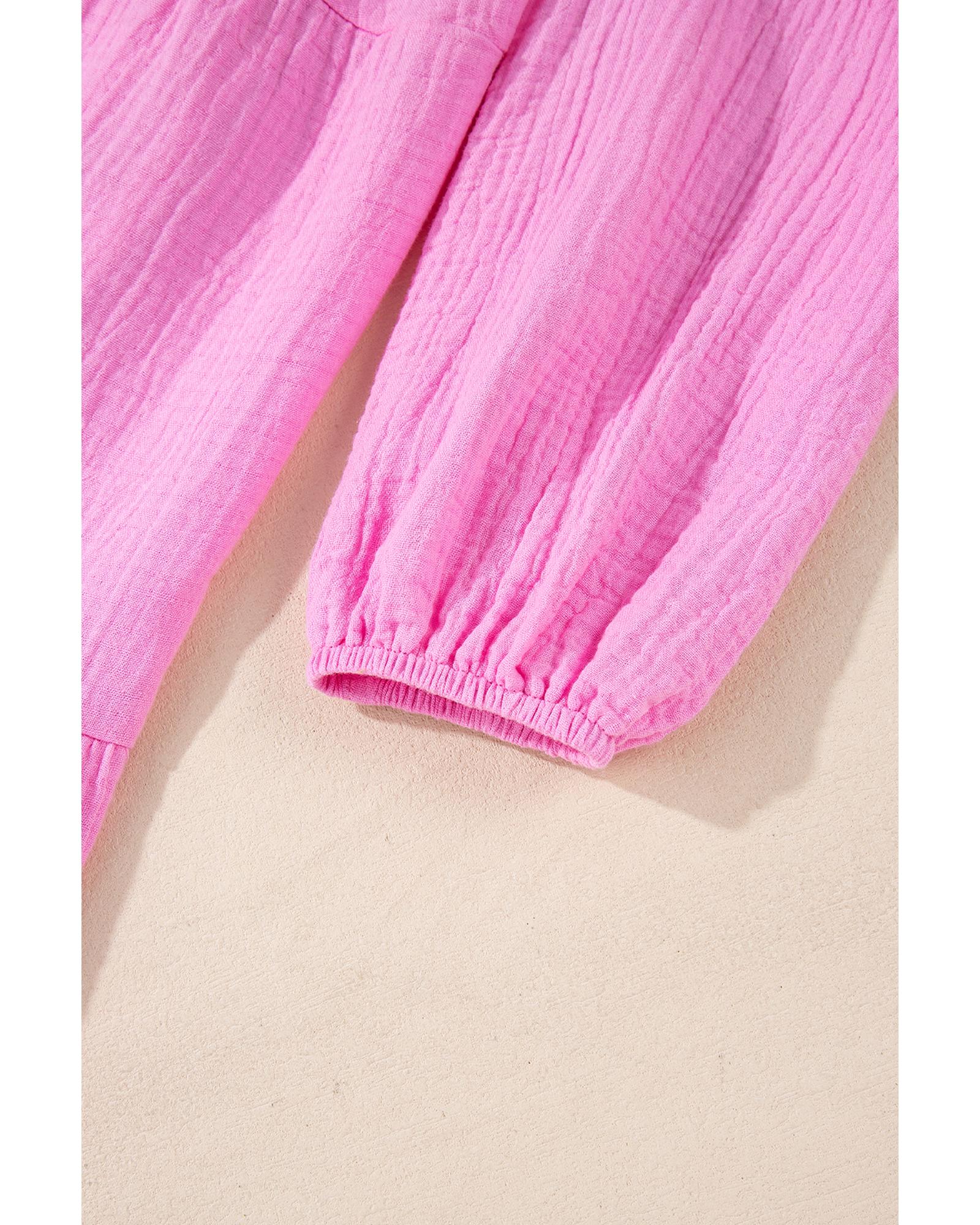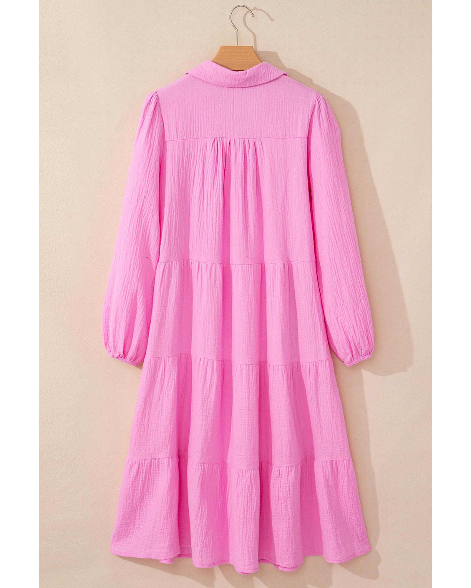 Bonbon Solid Collared V Neck Tiered Loose Fit Midi Dress – L