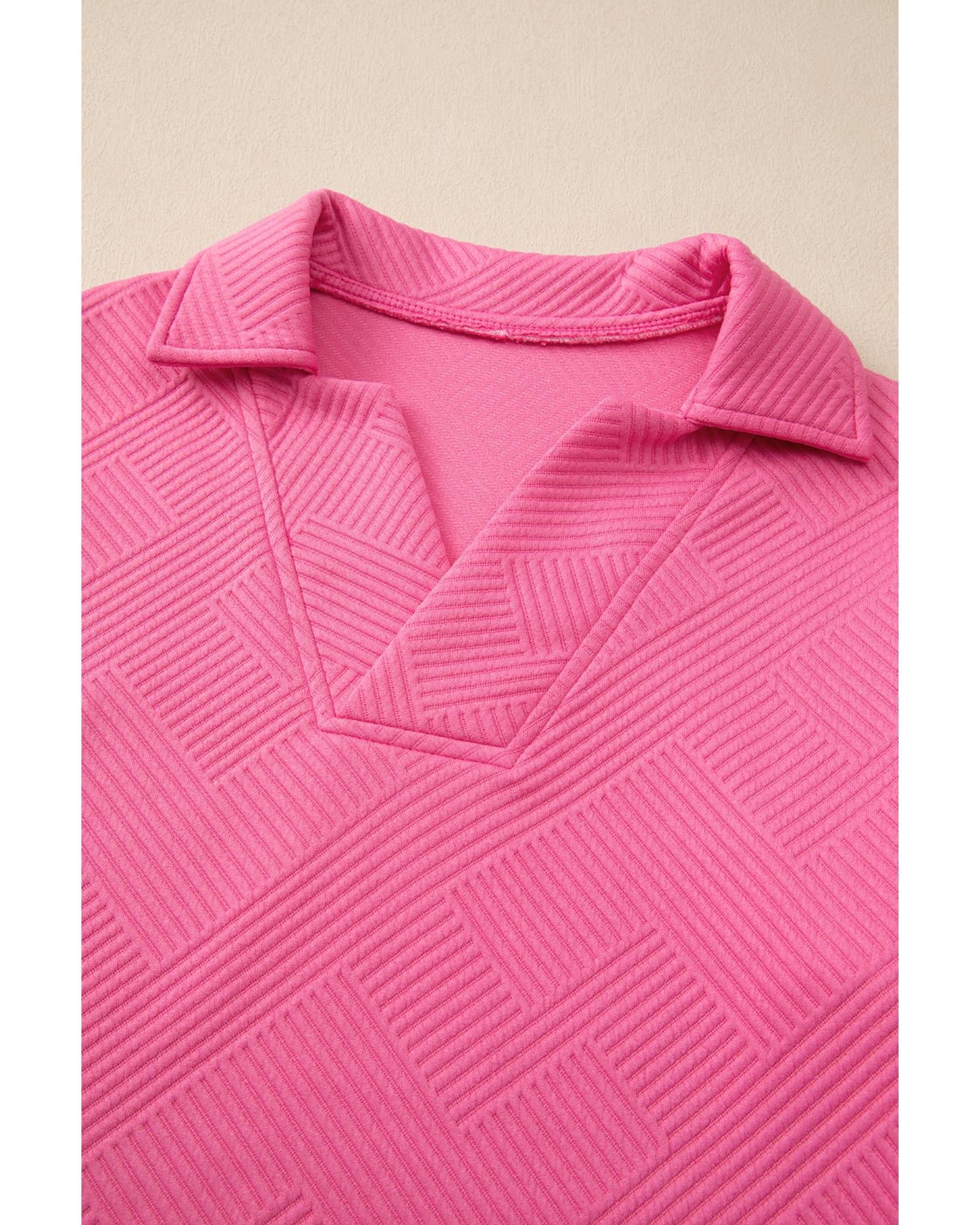 This stylish set features a textured collared V-neck top paired with wide-leg pants, offering a sleek and versatile look suitable for various occasions. The design combines chic and casual elements, making it a fashionable choice for everyday wear.