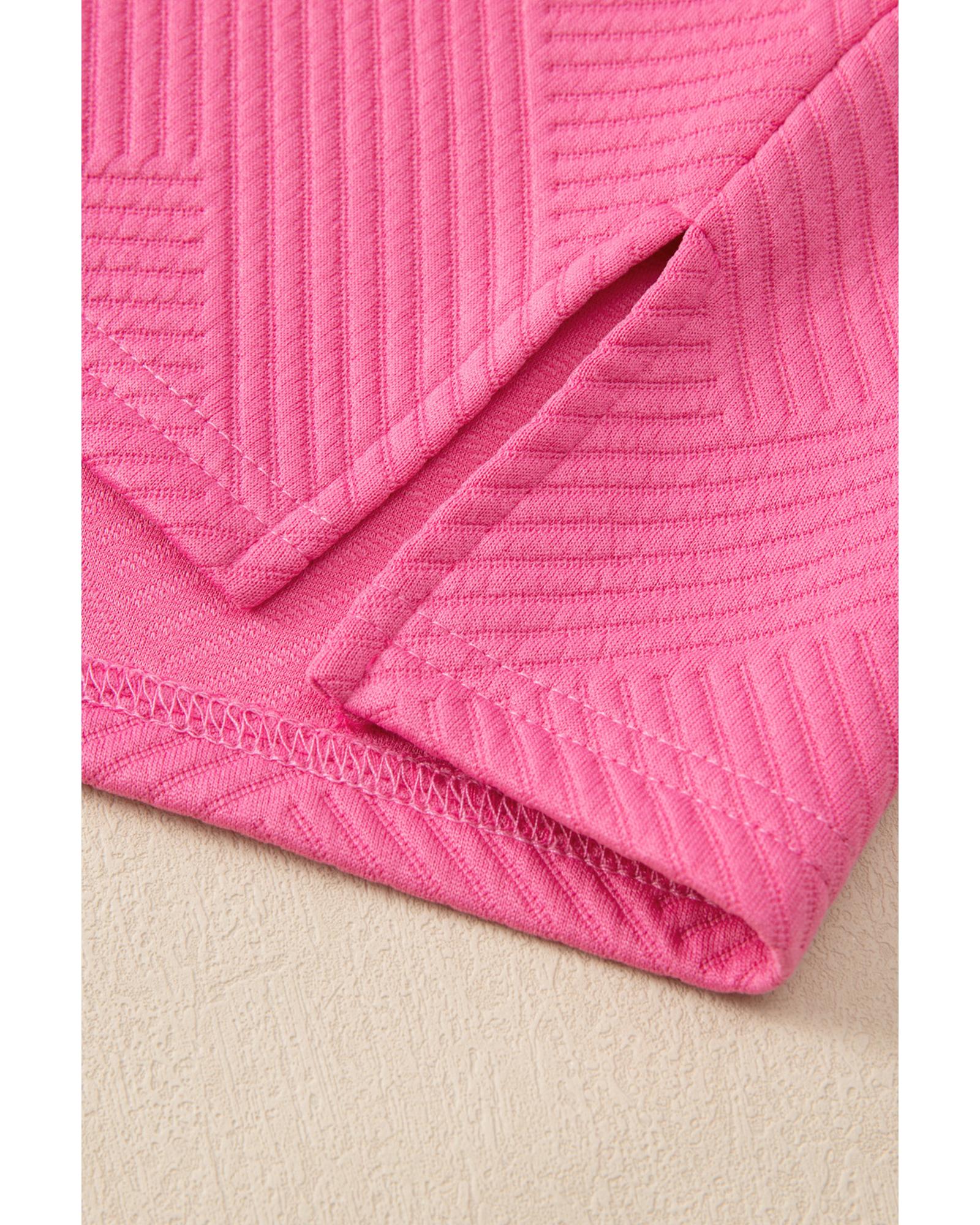 Bonbon Solid Textured Collared V Neck Top and Wide Leg Pants Set – S