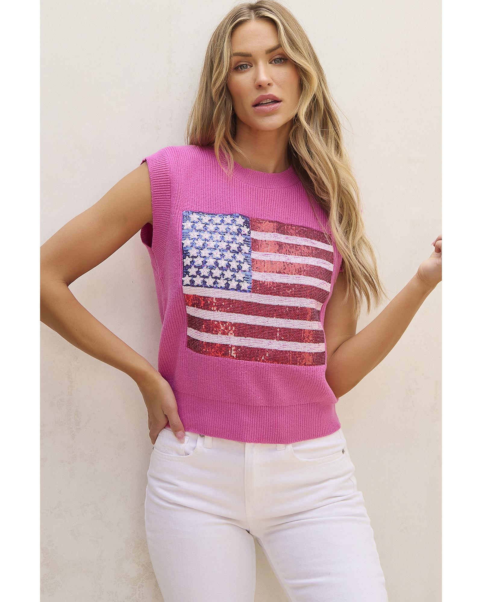 Bonbon Sparkling American Flag Knitted Vest – S