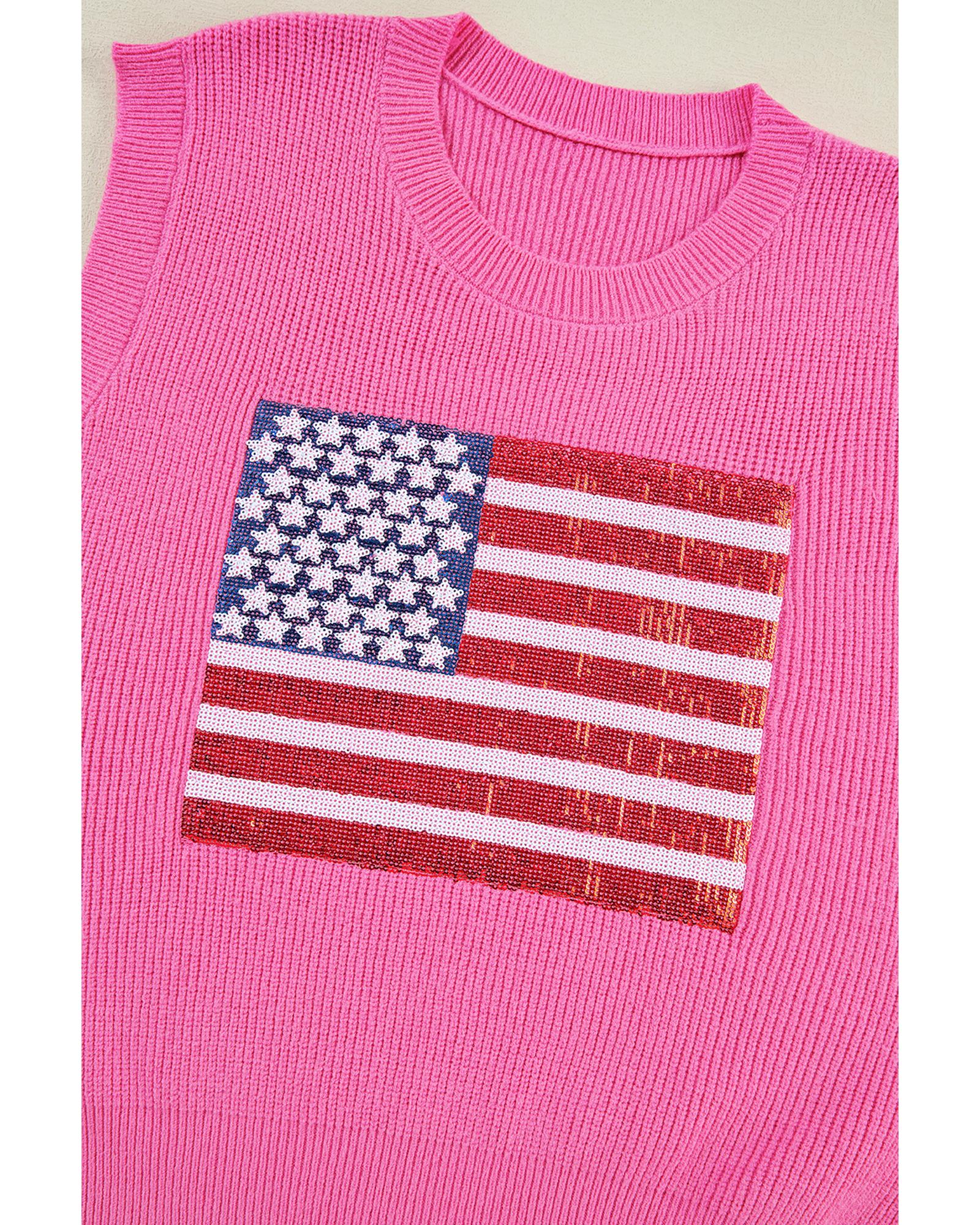 This sparkling American flag knitted vest is designed with a trendy fitted look, making it a stylish choice for celebrating patriotic occasions. Crafted from breathable knitted fabric, it offers both elegance and comfort. The vest features a solid color with a prominent USA flag on the front, making it versatile to pair with various outfits. Available in multiple sizes, it provides a high elasticity for a comfortable fit.