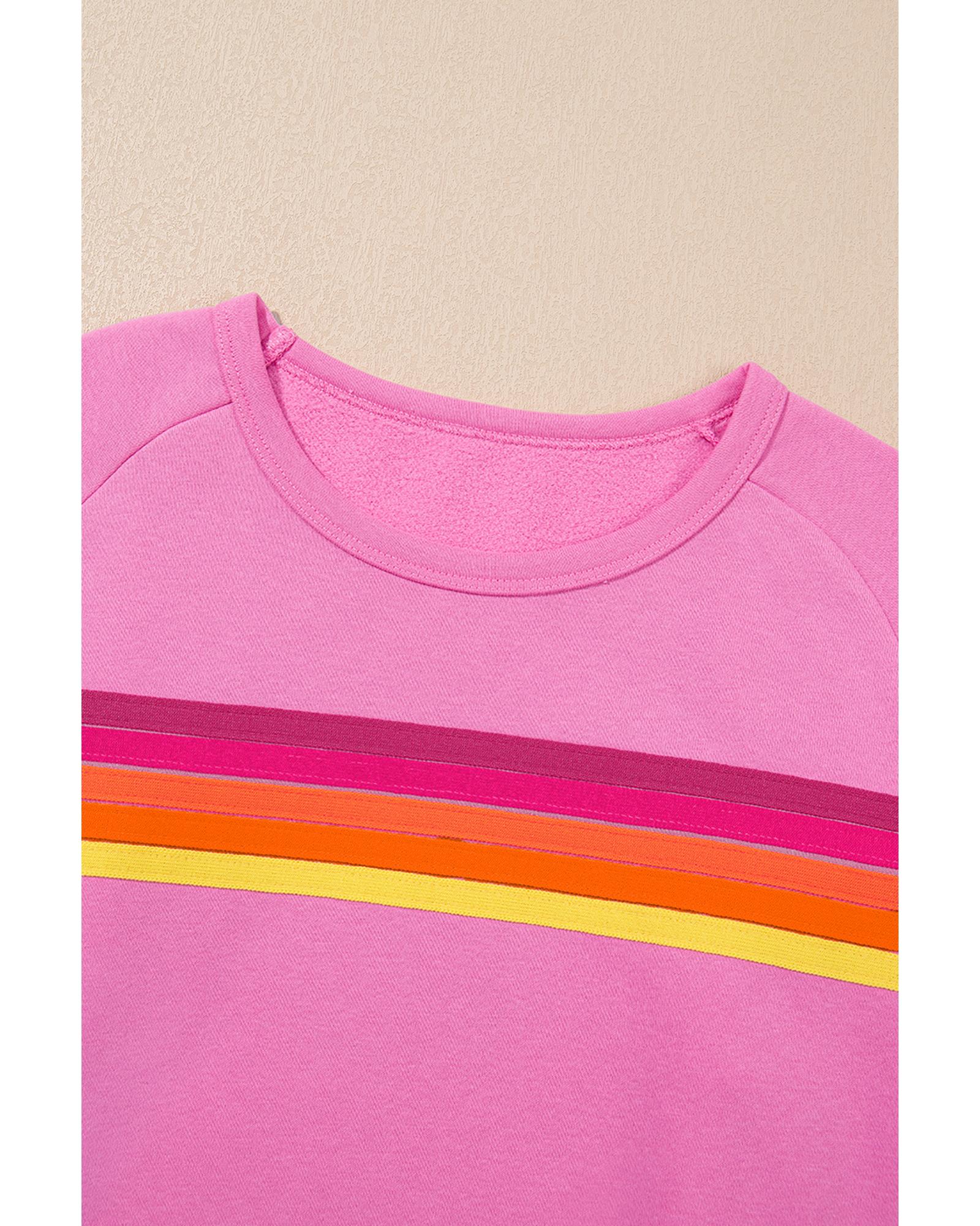 Bonbon Striped Accent Pullover and Shorts Two Piece Casual Set – XL