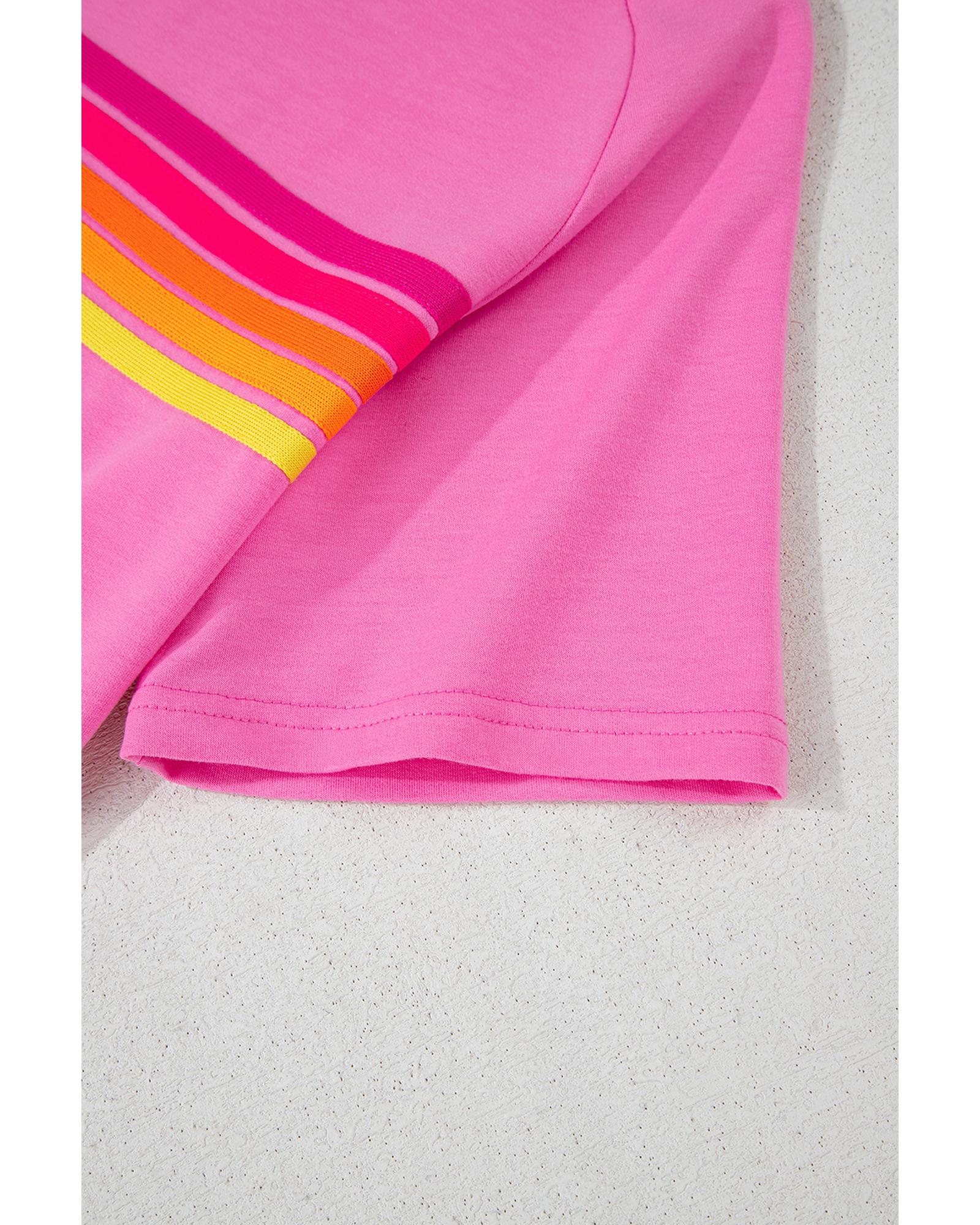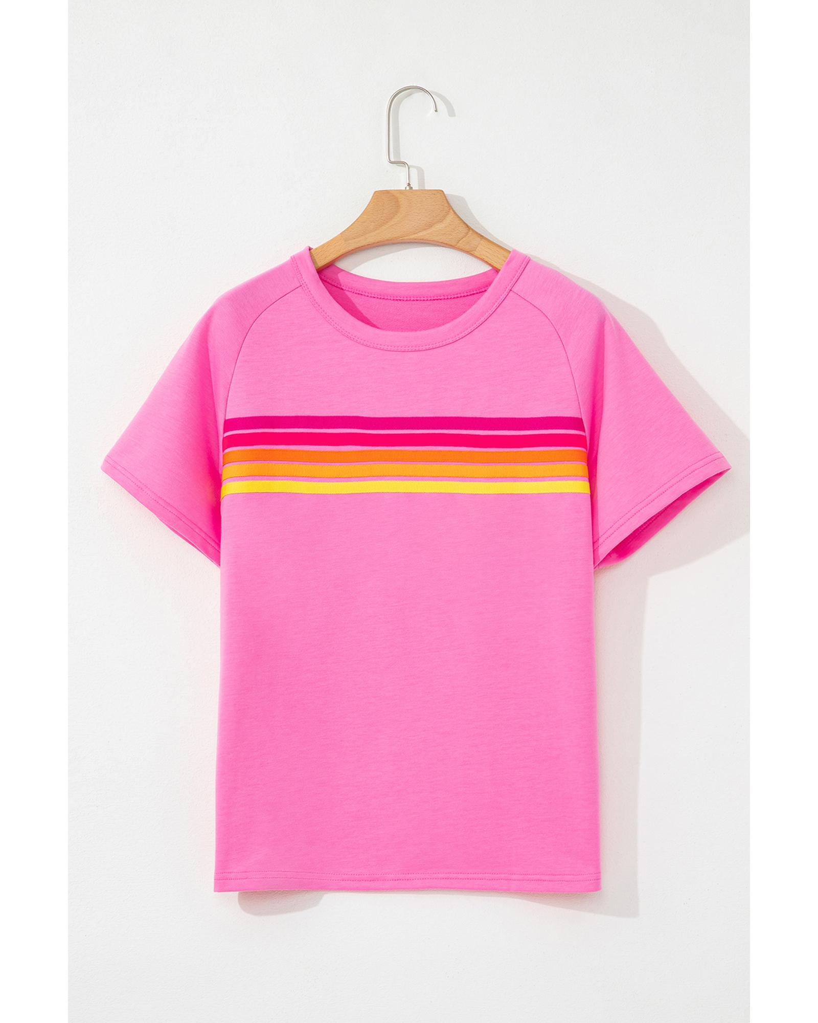 This casual tee features a stylish striped front design, making it a versatile addition to any wardrobe. Its comfortable fit and trendy appearance make it suitable for various everyday activities, from running errands to relaxing at home.