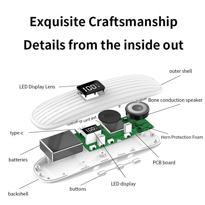 - Bone Conduction Technology: Uses vibration sound generator and noise reduction for clear audio without headphones.