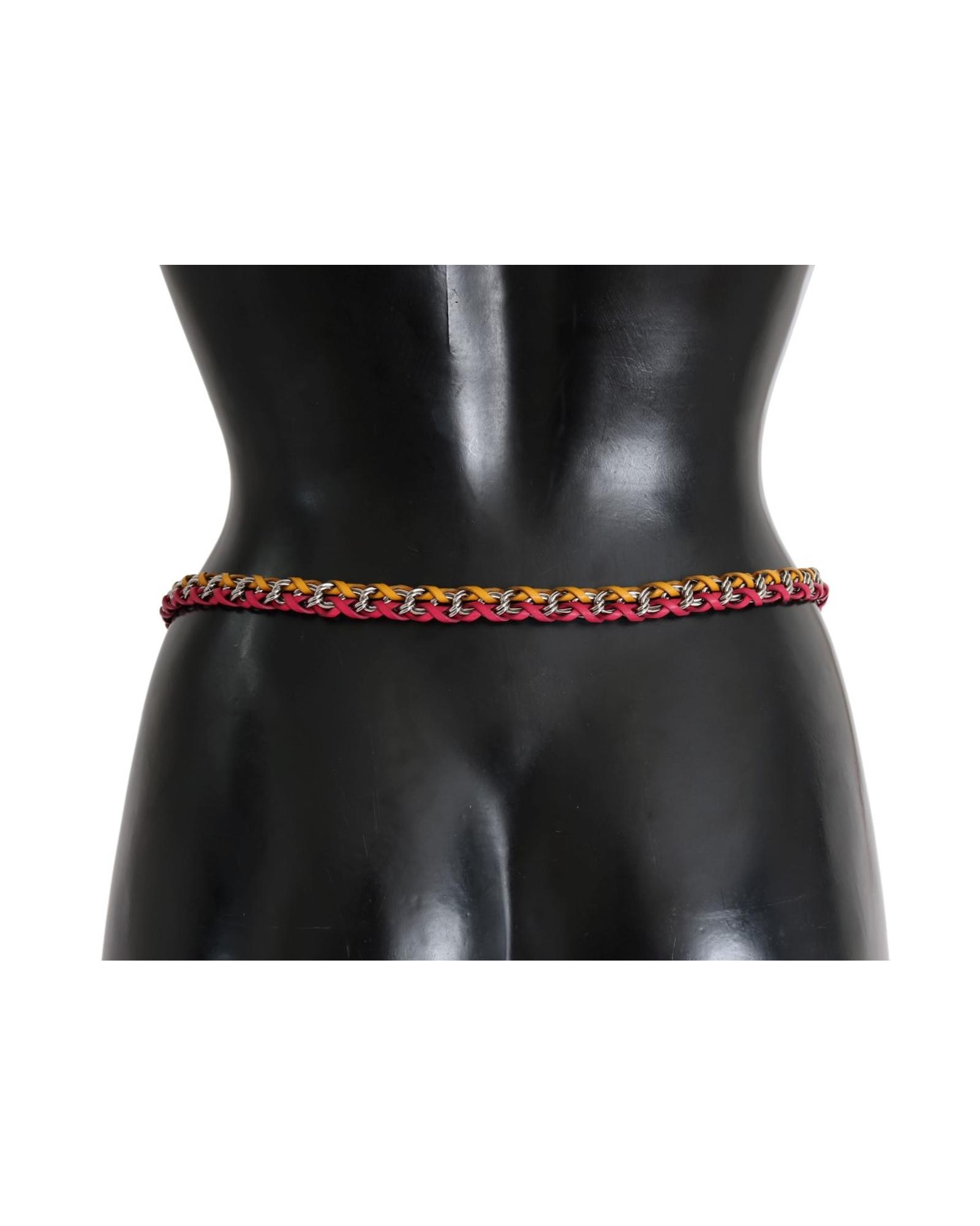 This belt features elegant crystal detailing, making it a stylish accessory for women. Crafted with high-quality materials, it combines leather, brass, and crystal elements to create a sophisticated look. Designed in Italy, this belt is perfect for adding a touch of luxury to any outfit.