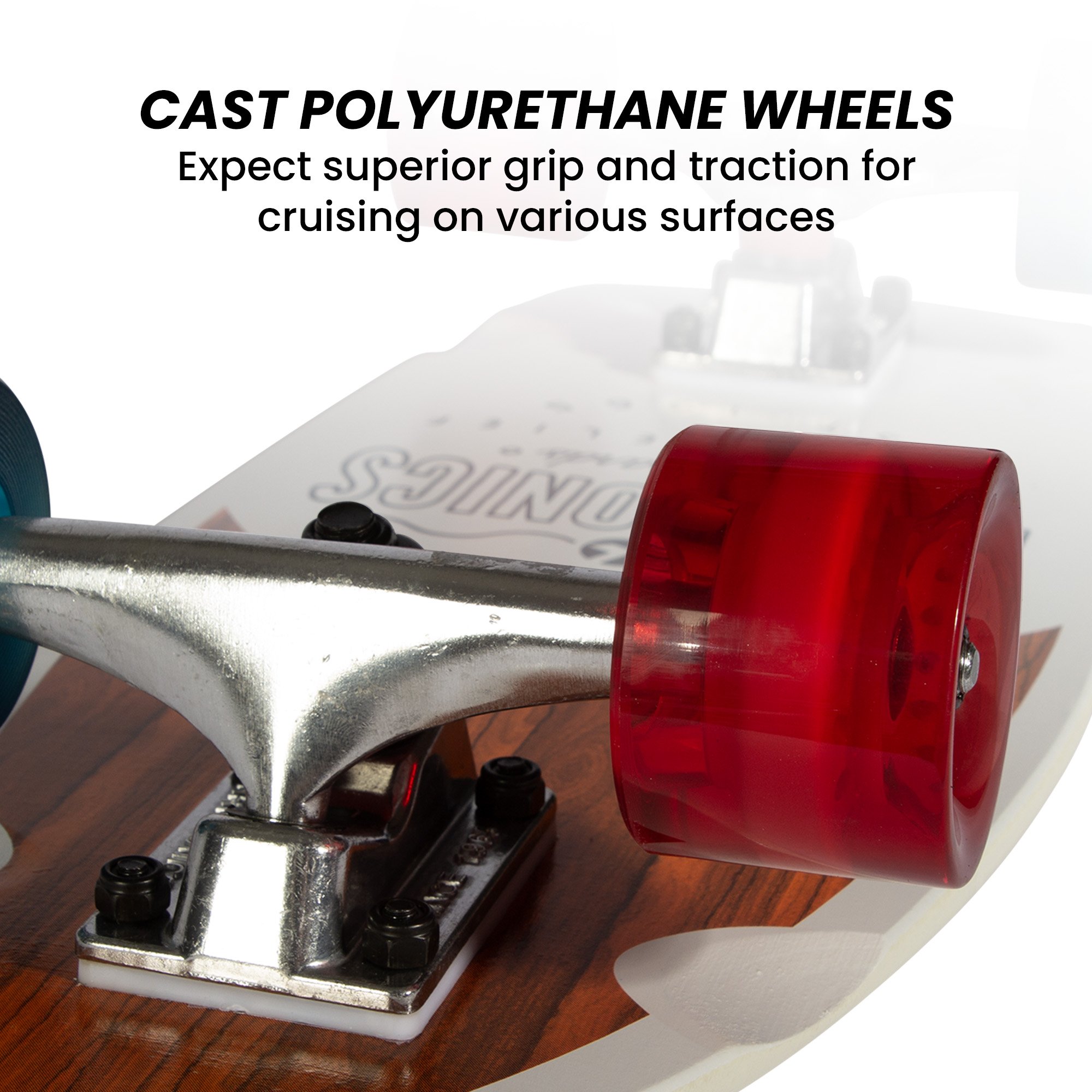 This mini fat cruiser board is designed for urban riding, offering stability and control with a compact size and durable construction. It features a sturdy deck, reliable wheels, and high-quality bearings to enhance your riding experience.