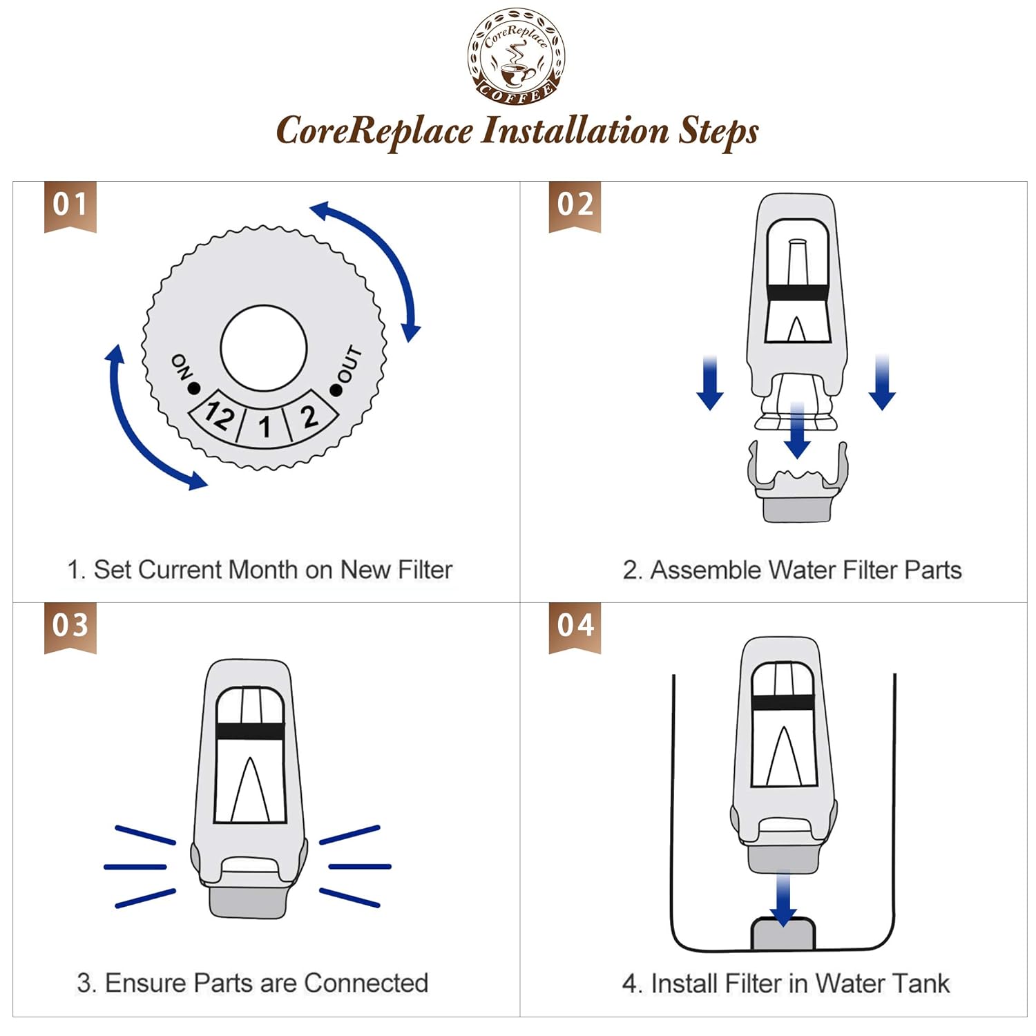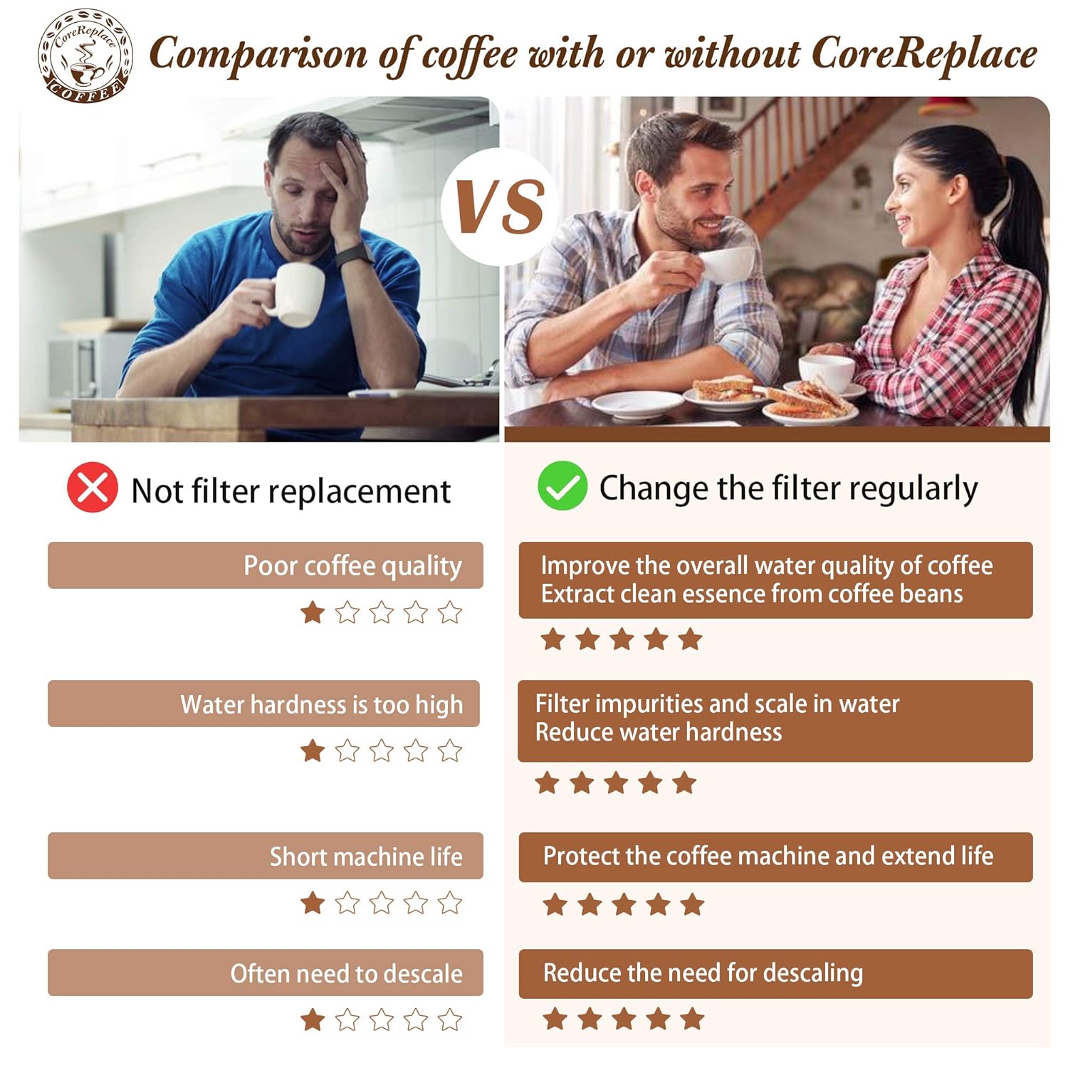 This replacement filter set is designed to maintain the optimal performance and flavor of your coffee machine. It effectively descales, deodorizes, and purifies water, helping to improve the taste of your coffee while protecting your machine from mineral buildup. The filters are easy to install and suitable for specific coffee machine models, providing a convenient solution for consistent water quality and machine longevity.