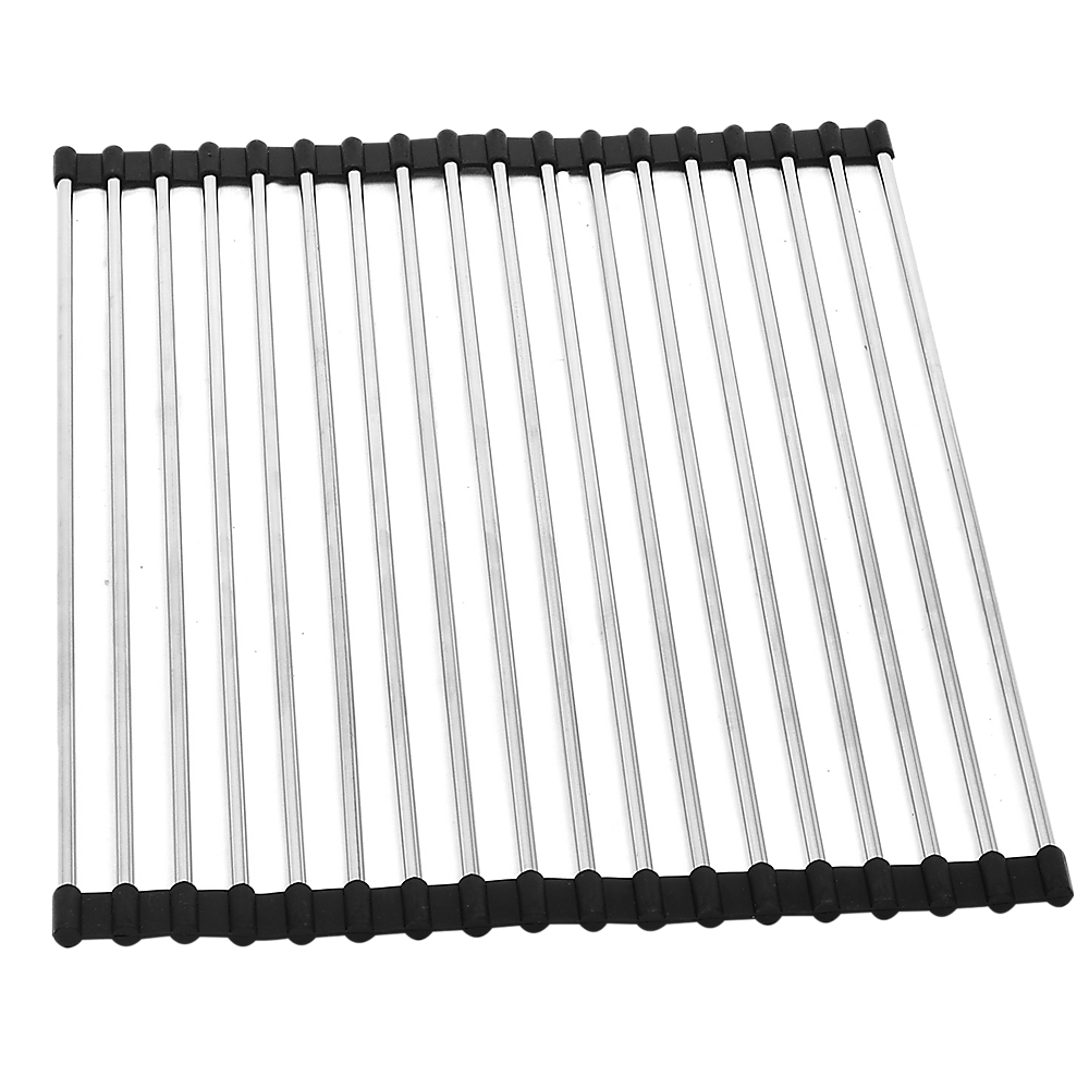 - Foldable stainless steel dish drying rack with silicone frame for compact storage