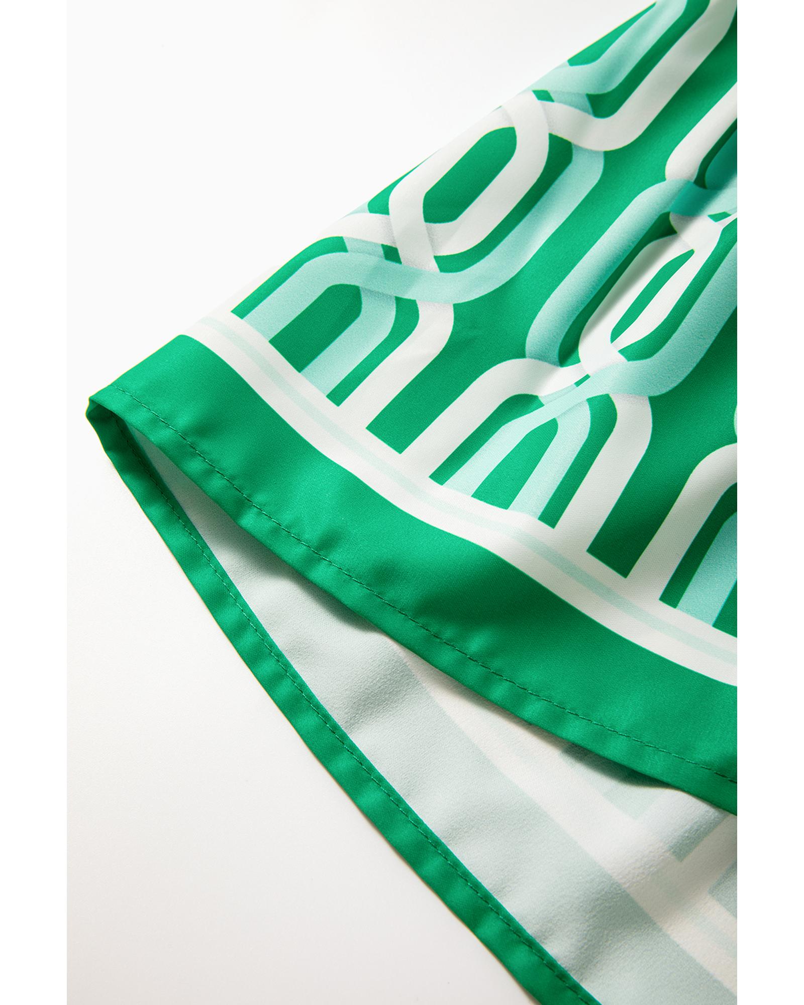 This bright green abstract patterned mini dress features a flattering V neckline and trendy puff short sleeves, making it a stylish choice for various occasions. The high waist design accentuates your waistline and elongates your legs, creating a chic silhouette. The unique abstract print adds a distinctive touch to the overall look.