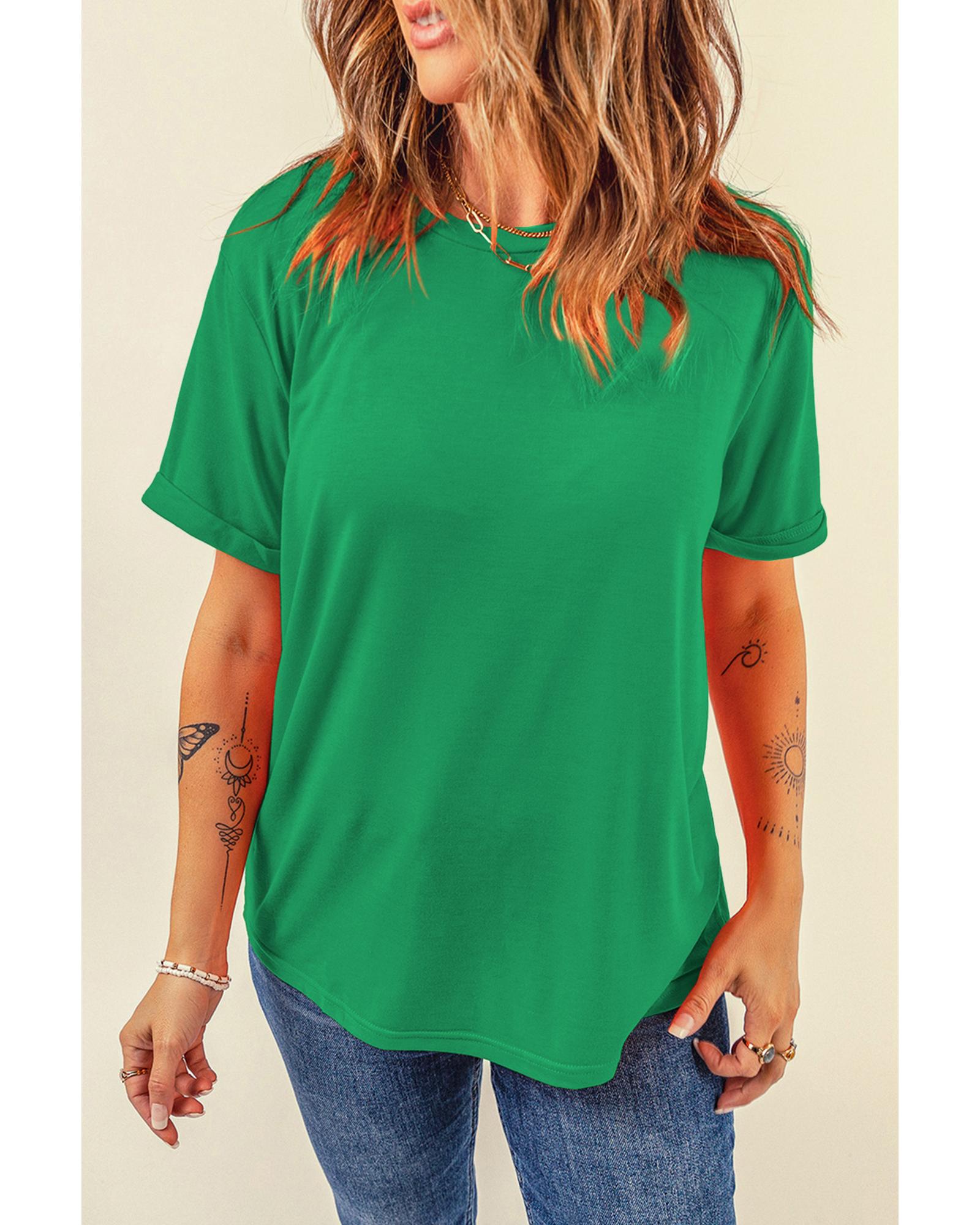 Package Content: 1 x Bright Green Casual Crew Neck Tee