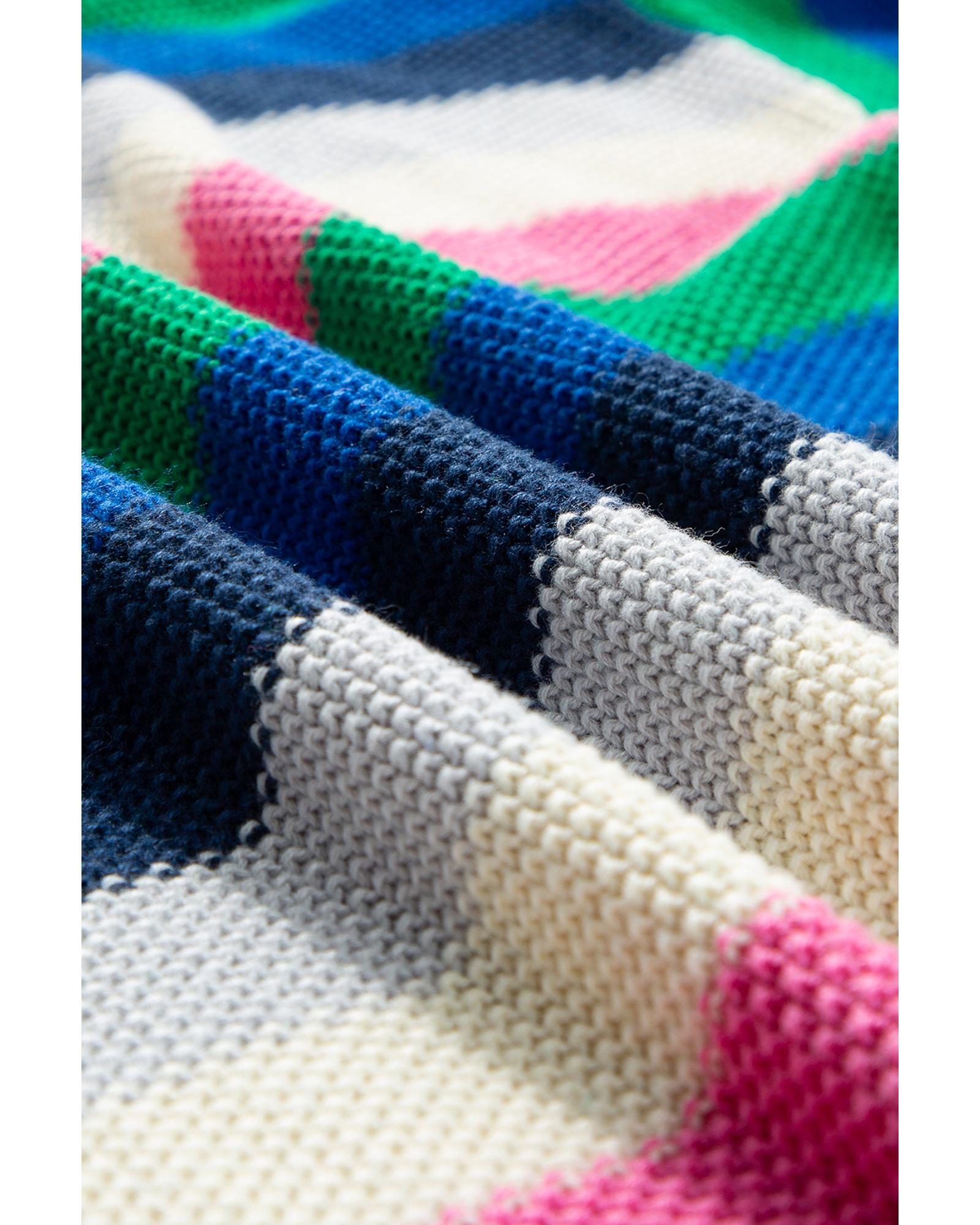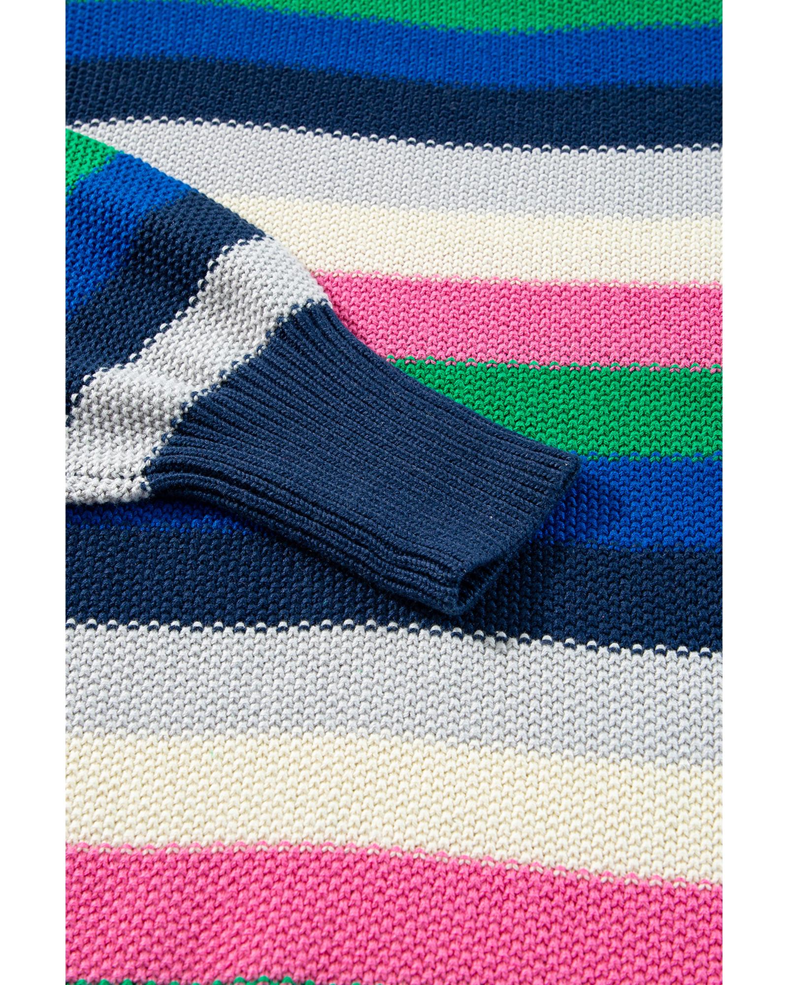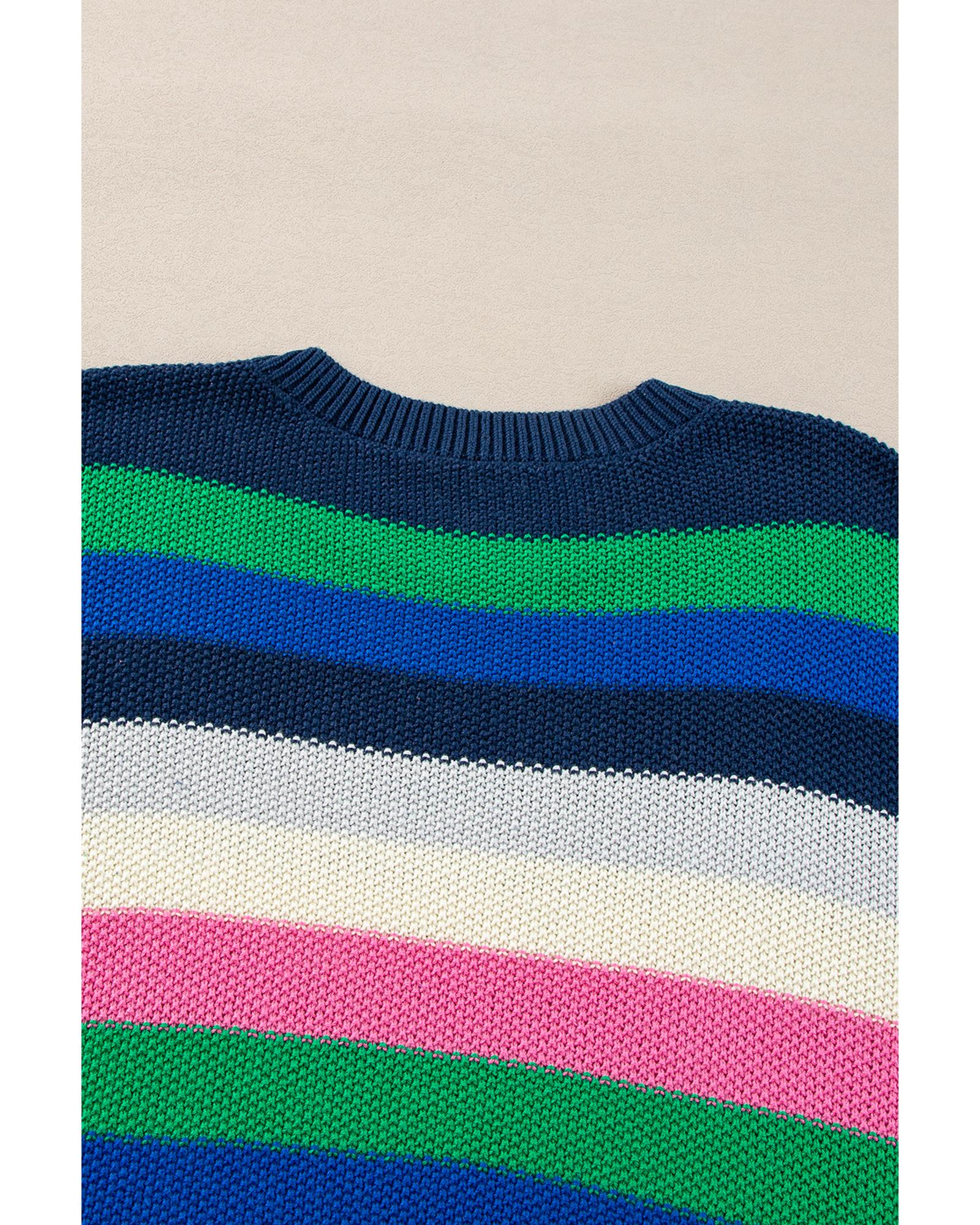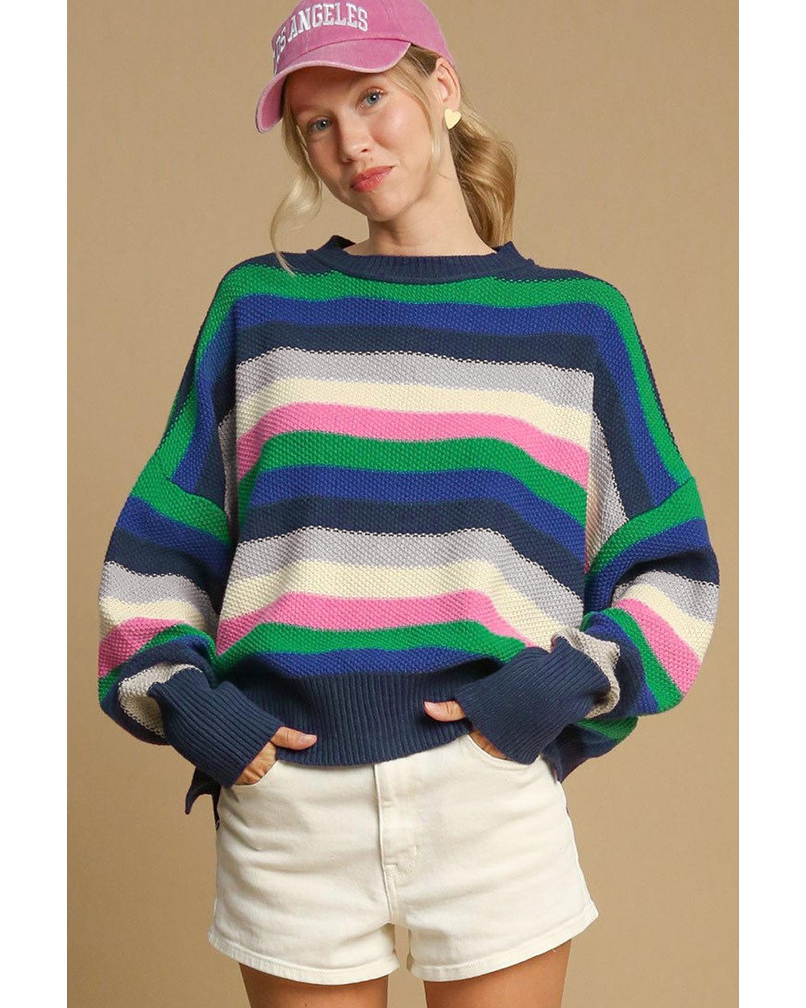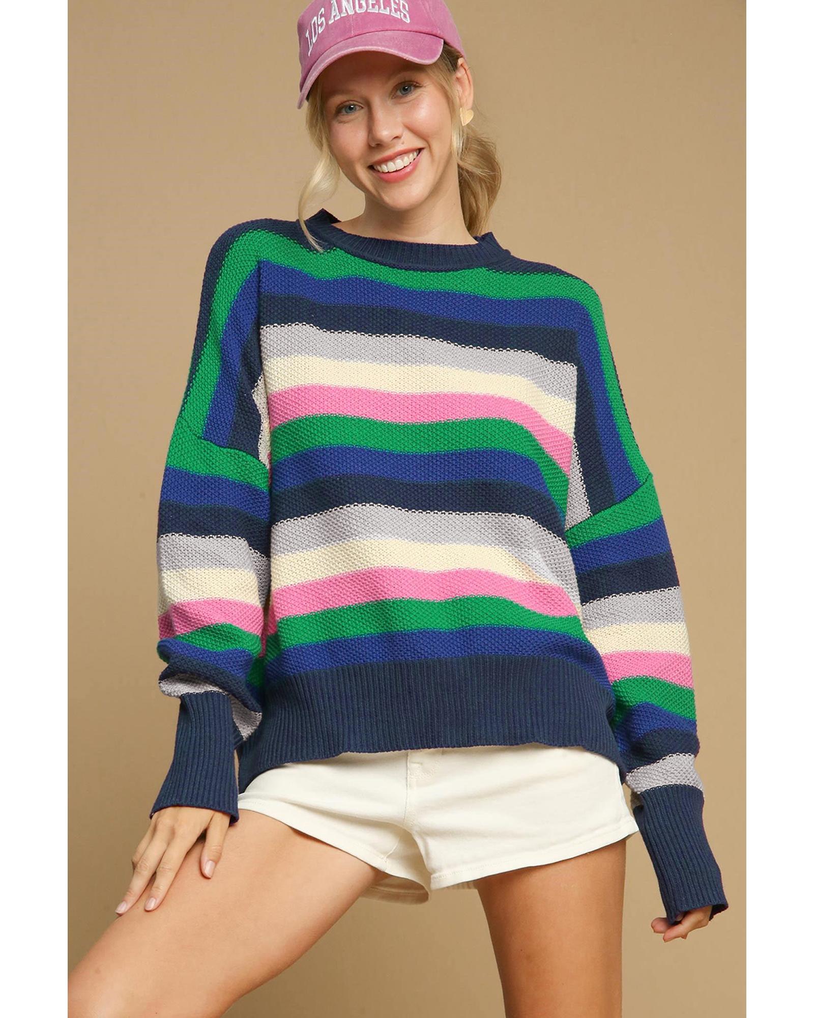 Bright Green Rainbow Striped Crew Neck Drop Shoulder Sweater – XL