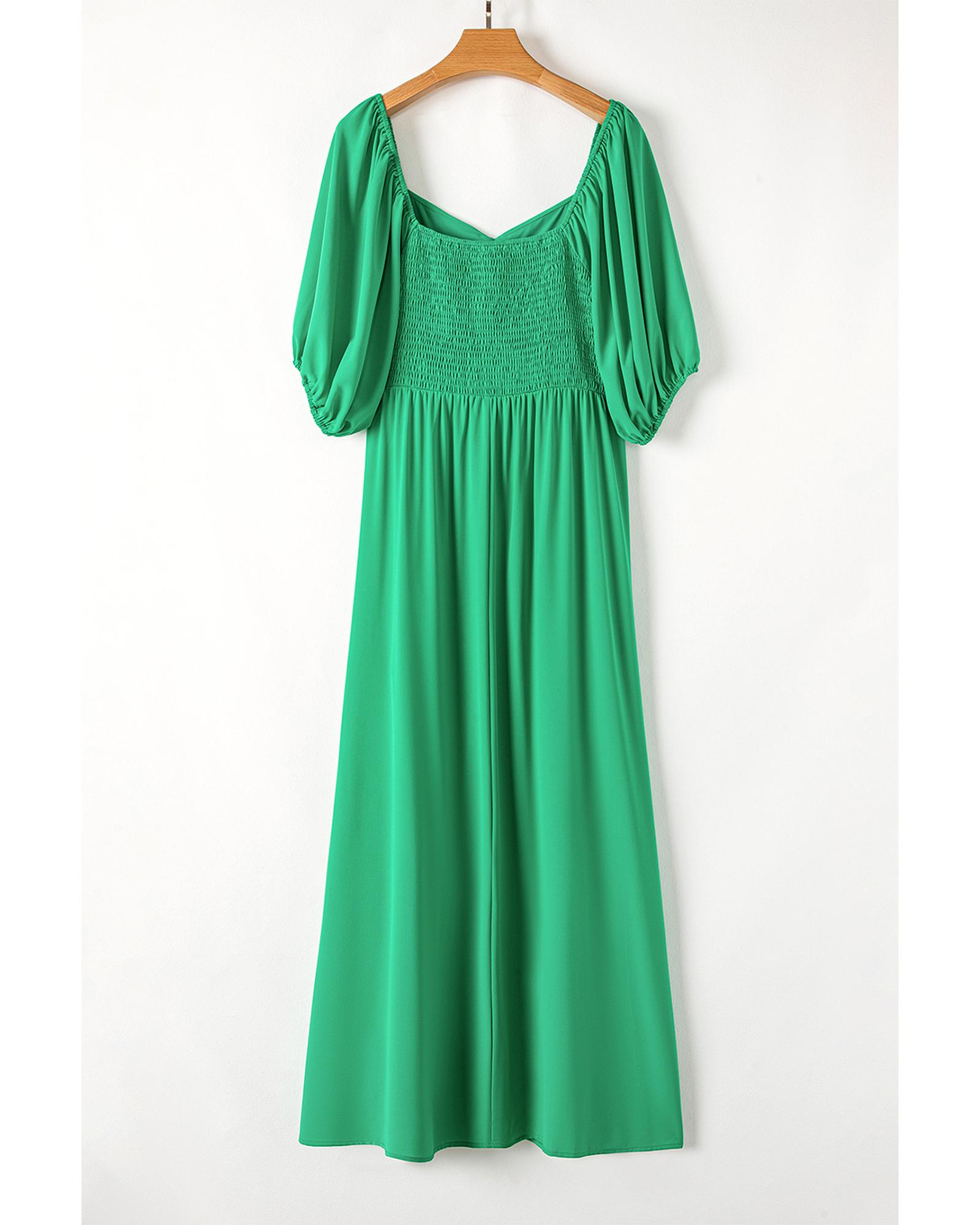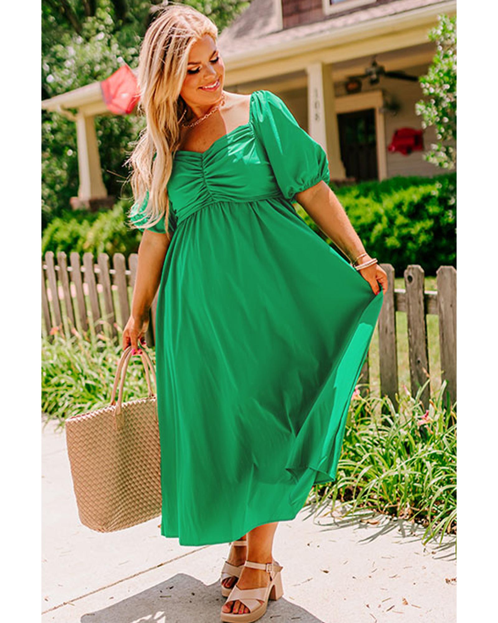 Bright Green Ruched Front Puff Sleeve Plus Size Long Dress – 1X