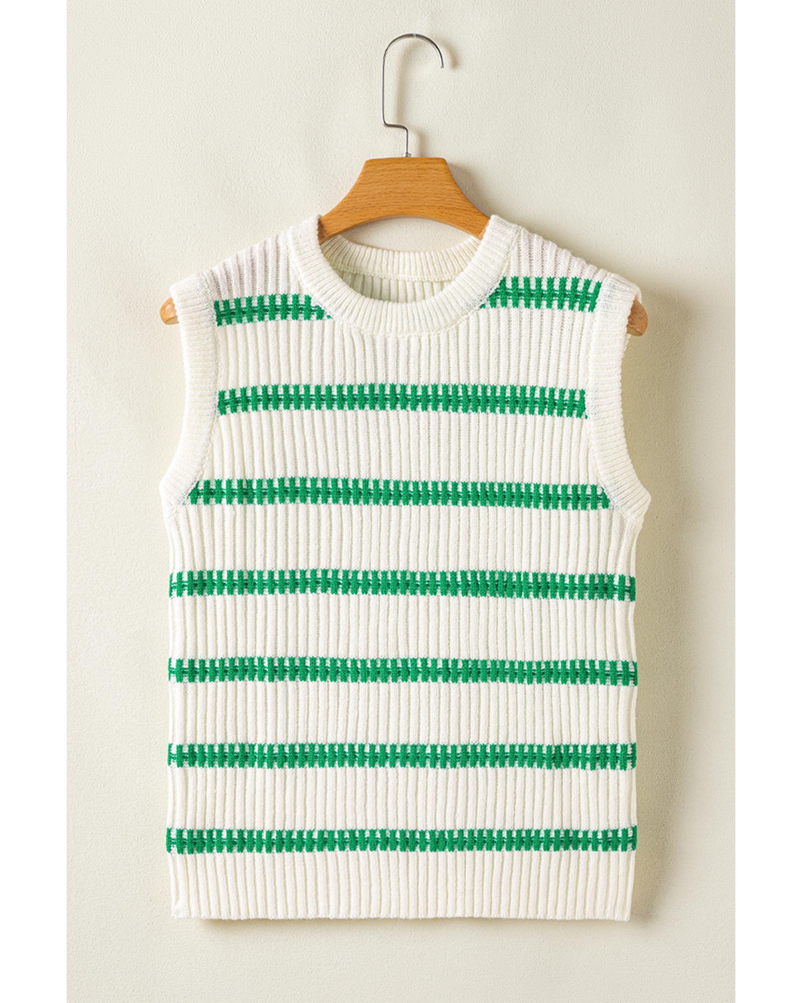 This bright green striped round neck casual sweater vest offers a stylish and versatile addition to any wardrobe. Its modern design combines timeless appeal with contemporary fashion, making it suitable for various occasions. Crafted with high-quality materials, this vest ensures comfort and durability for everyday wear.
